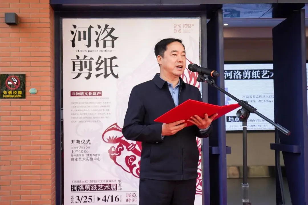 春风送暖,艺韵绵长。3月25日上午,《从河洛出发》系列文化艺术展演之河洛剪纸艺术展在郑州商学院紫荆西校区商业艺术实验中心一楼展厅隆重开幕。巩义市委宣传部常务副部长王义宾,市文广旅体局党组书记、局长孙中才,郑州商学院校长等领导出席活动,艺术学院师生代表及我市社会文艺爱好者共同参加。