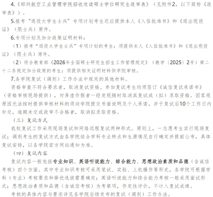 郑州航空工业管理学院2026年复试办法及复试分数线已出,需要的同学及时关注!