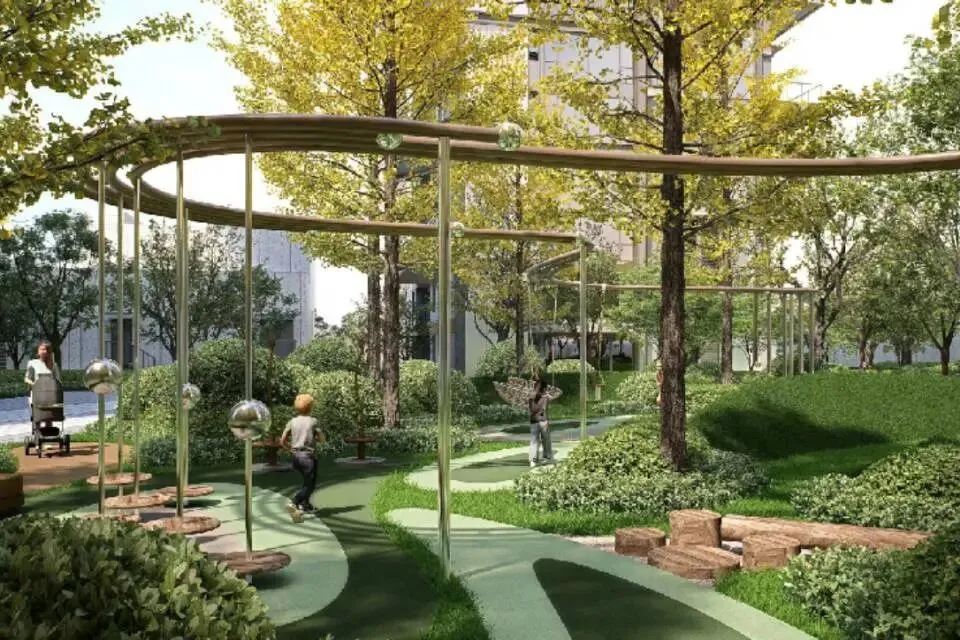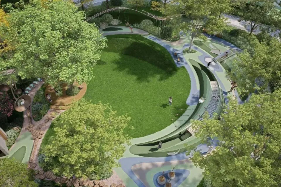 项目背靠约110亩的山体公园,直面约1公里的贾鲁河景观廊道,东侧还有体育公园和儿童公园。在寸土寸金的主城区,这样的生态配置几乎是不可复制的。