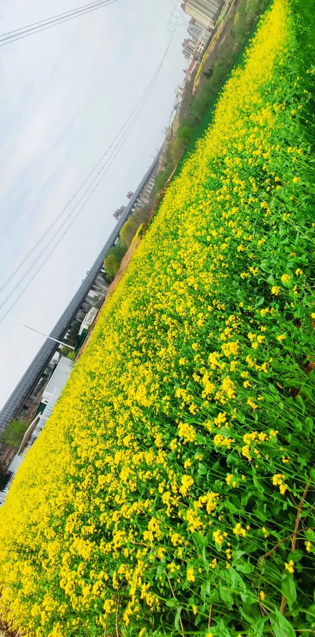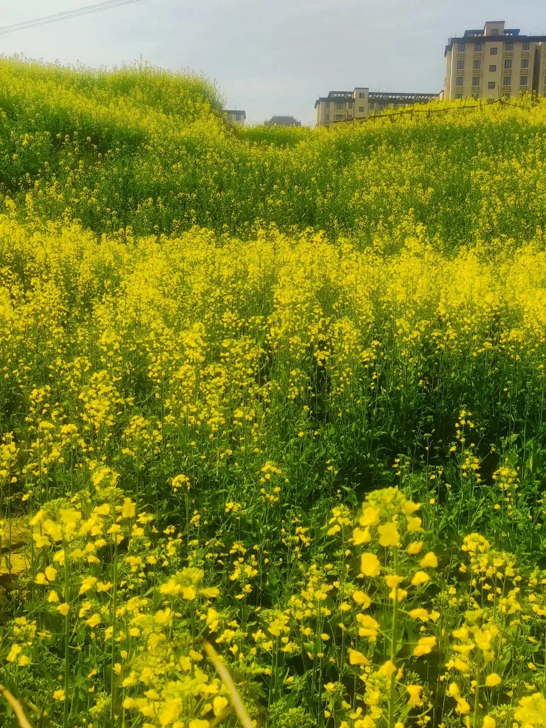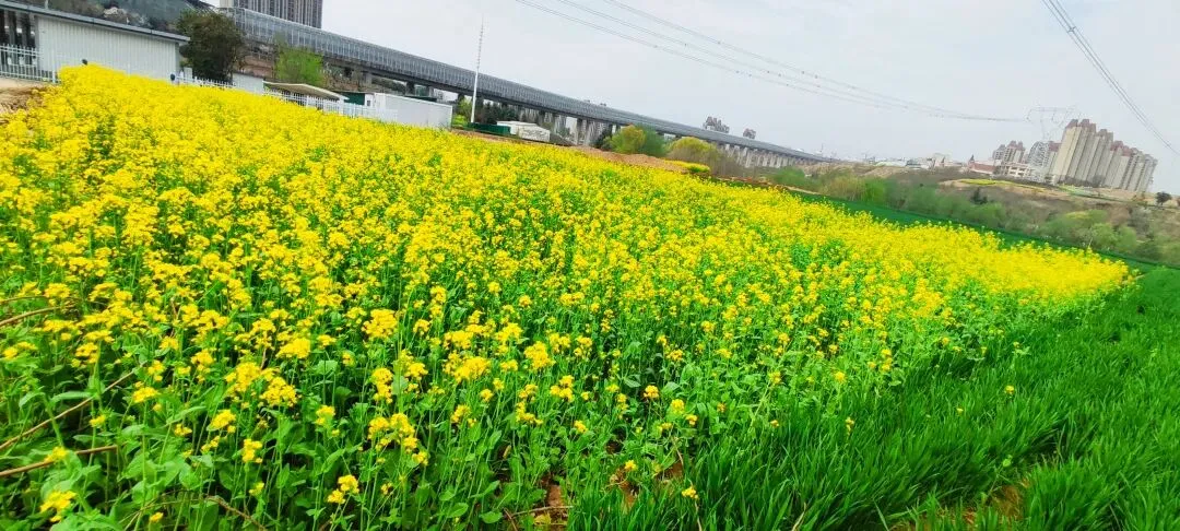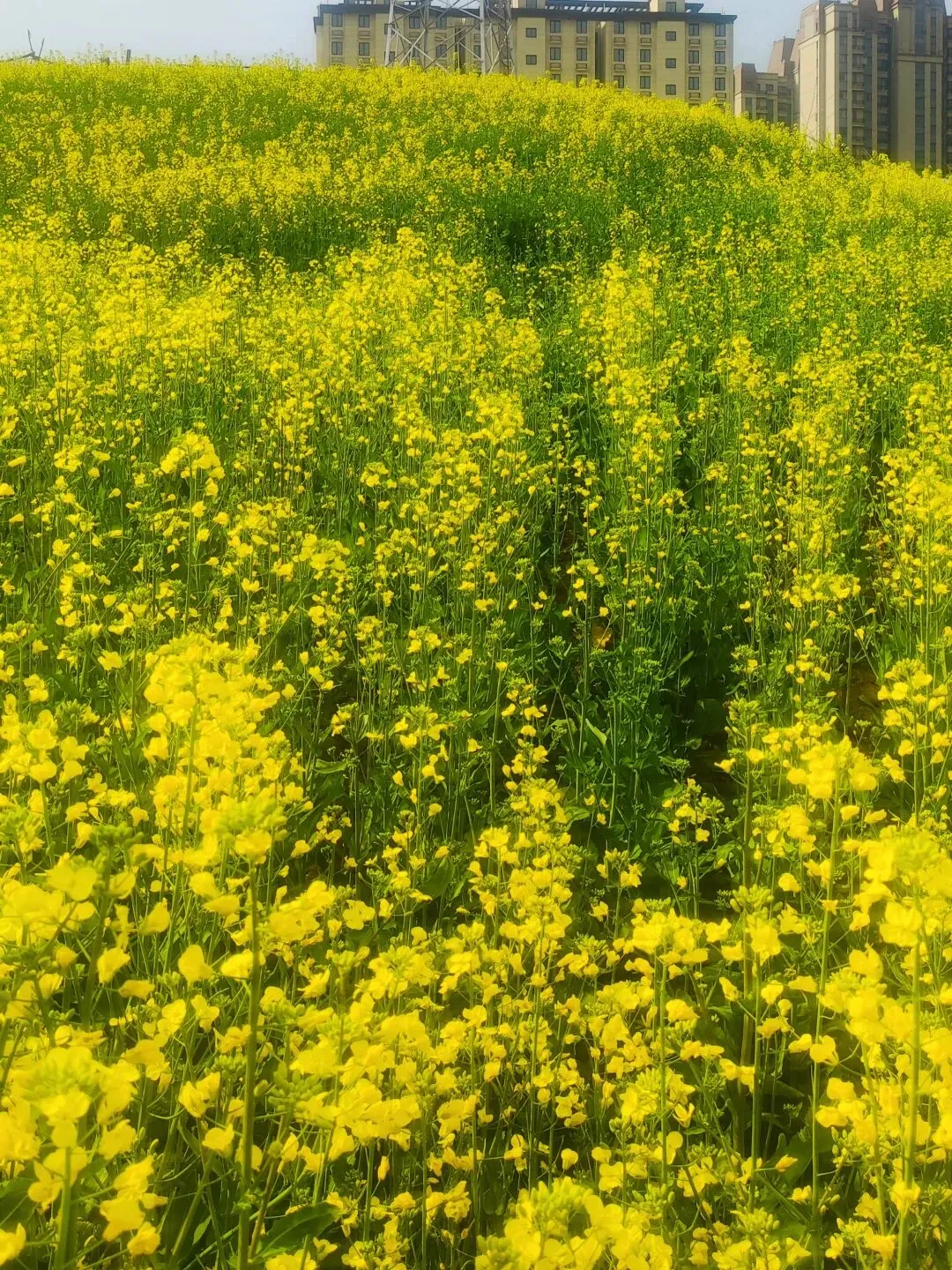 今天坐6号线去洞林湖办事,走出地铁口的瞬间,直接被迎面扑来的满目金黄给晃瞎了眼!哇,原来是好几片油菜花顺着坡地铺展开来,中间还随机穿插着几块绿油油的麦地,黄绿相间,看着就舒服!此刻正是花儿开得最艳最烈的时候,满眼的金黄随着微风轻轻舒展,空气里都弥漫着一股清甜的花香,深吸一口,全是春天的味道! 蜜蜂穿梭在花丛间,嗡嗡地忙着采蜜;蝴蝶扑棱着翅膀,在花海里自在飞舞;还有几位勤劳的大姐,正在旁边的菜地里除草……