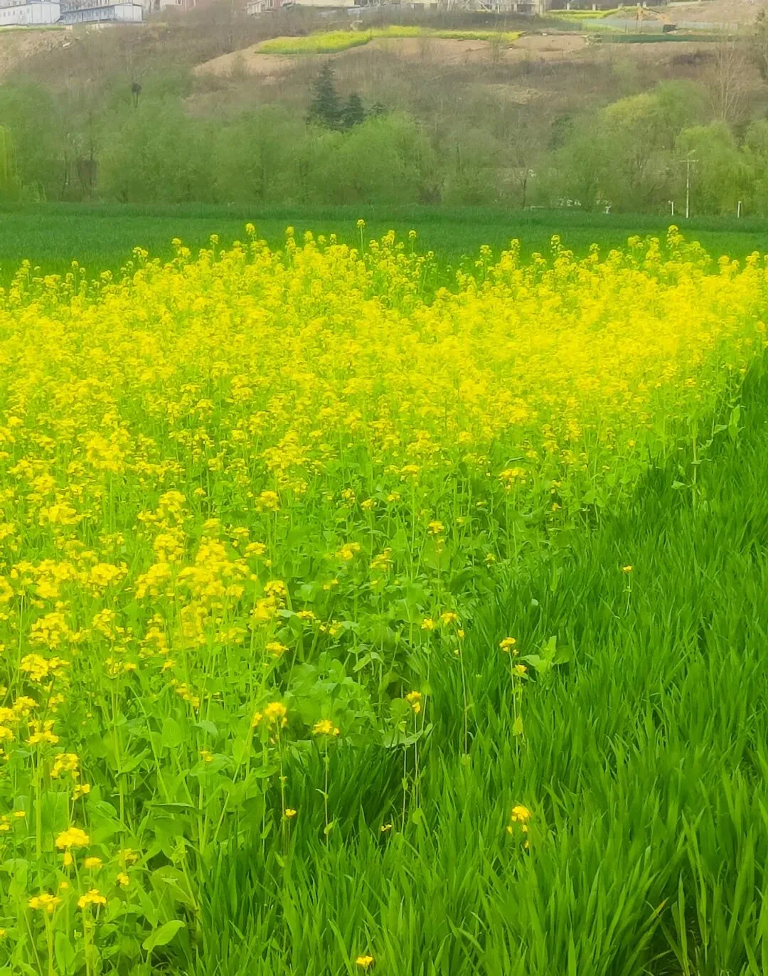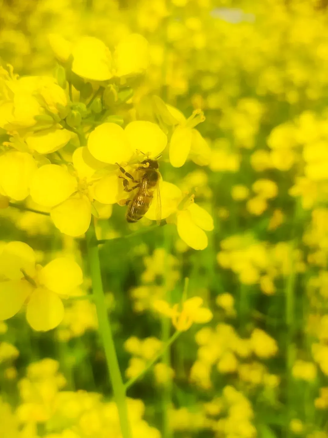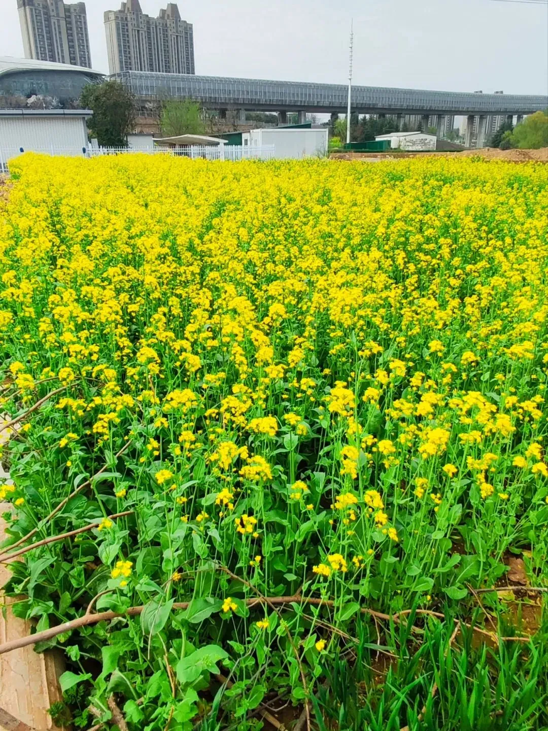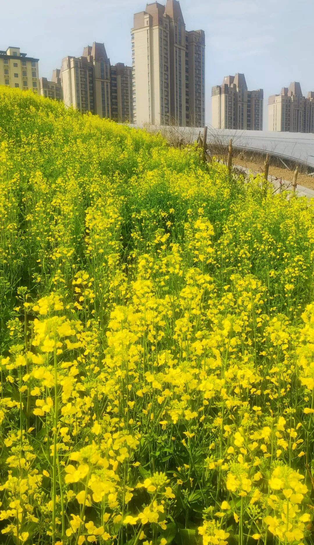 今天坐6号线去洞林湖办事,走出地铁口的瞬间,直接被迎面扑来的满目金黄给晃瞎了眼!哇,原来是好几片油菜花顺着坡地铺展开来,中间还随机穿插着几块绿油油的麦地,黄绿相间,看着就舒服!此刻正是花儿开得最艳最烈的时候,满眼的金黄随着微风轻轻舒展,空气里都弥漫着一股清甜的花香,深吸一口,全是春天的味道! 蜜蜂穿梭在花丛间,嗡嗡地忙着采蜜;蝴蝶扑棱着翅膀,在花海里自在飞舞;还有几位勤劳的大姐,正在旁边的菜地里除草……
