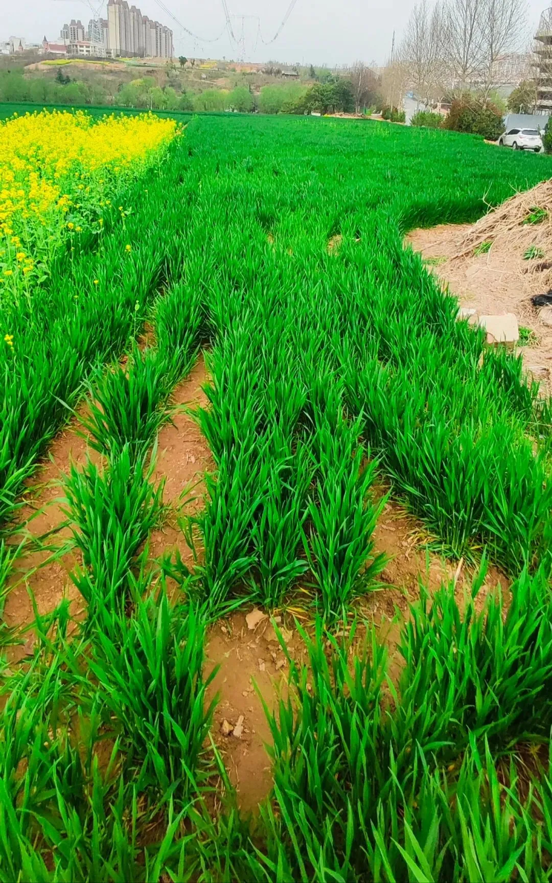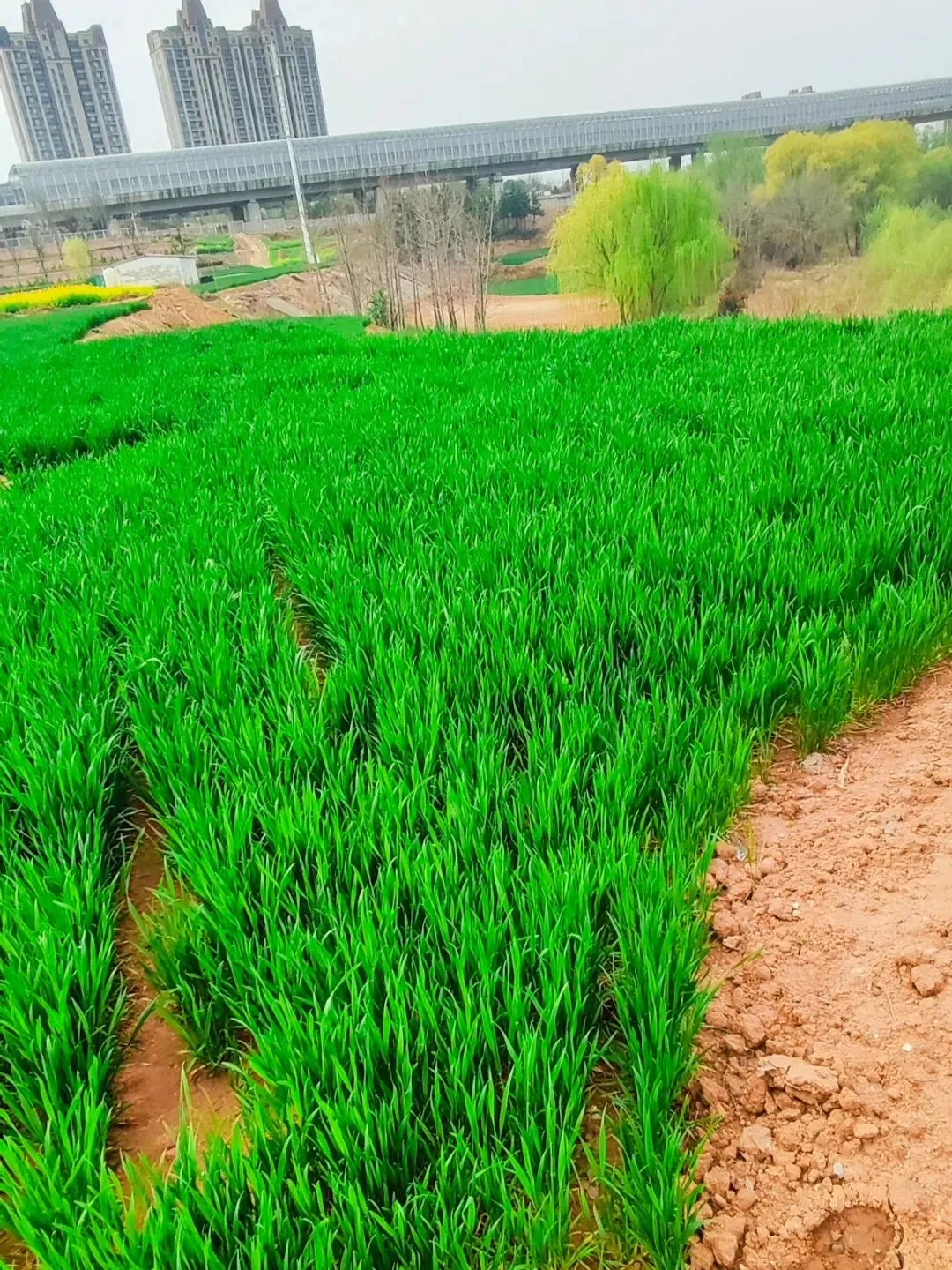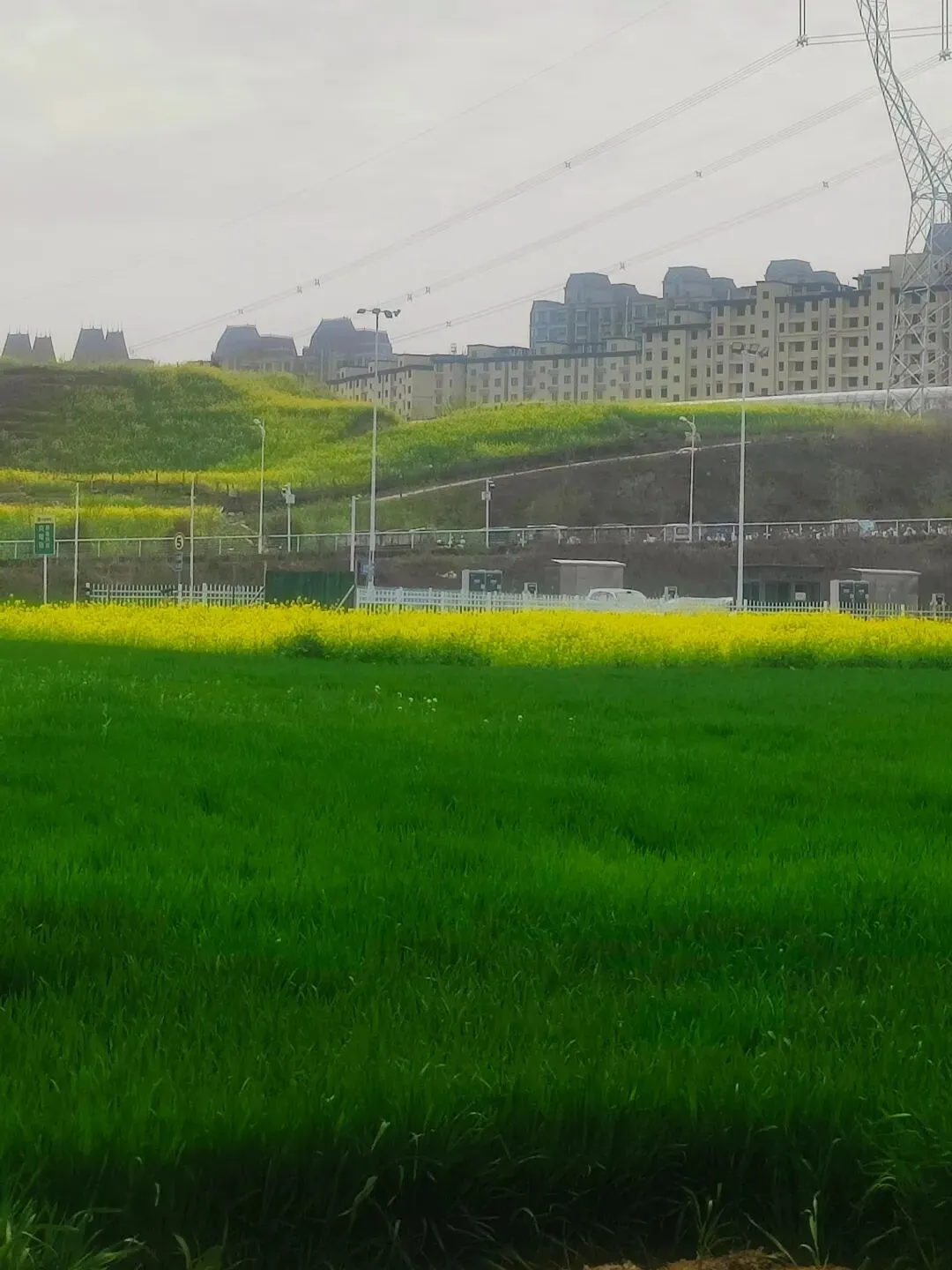今天坐6号线去洞林湖办事,走出地铁口的瞬间,直接被迎面扑来的满目金黄给晃瞎了眼!哇,原来是好几片油菜花顺着坡地铺展开来,中间还随机穿插着几块绿油油的麦地,黄绿相间,看着就舒服!此刻正是花儿开得最艳最烈的时候,满眼的金黄随着微风轻轻舒展,空气里都弥漫着一股清甜的花香,深吸一口,全是春天的味道! 蜜蜂穿梭在花丛间,嗡嗡地忙着采蜜;蝴蝶扑棱着翅膀,在花海里自在飞舞;还有几位勤劳的大姐,正在旁边的菜地里除草……