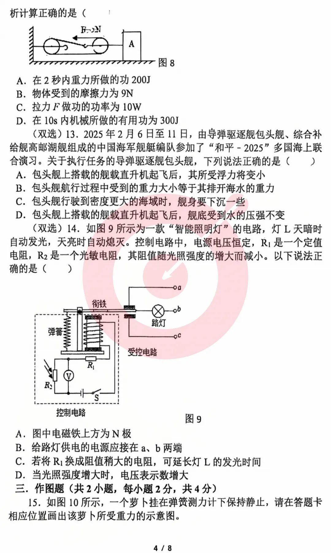 【物理】2026年郑州外国语中学九年级3月学情调研—物理