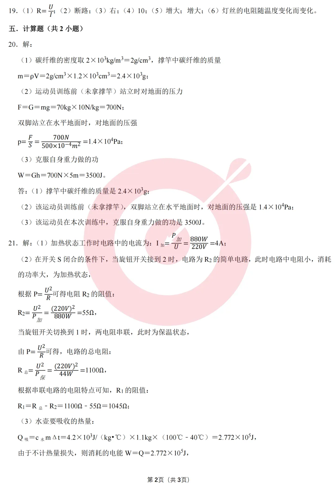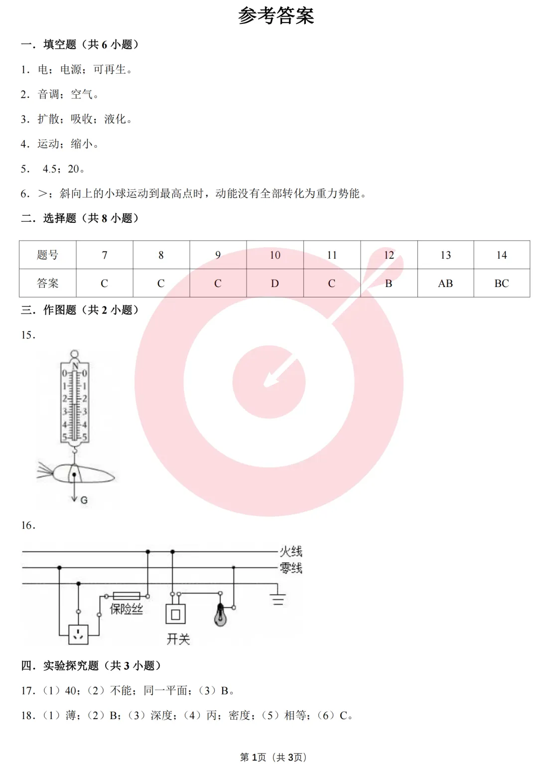 >【物理】2026年郑州外国语中学九年级3月学情调研—物理