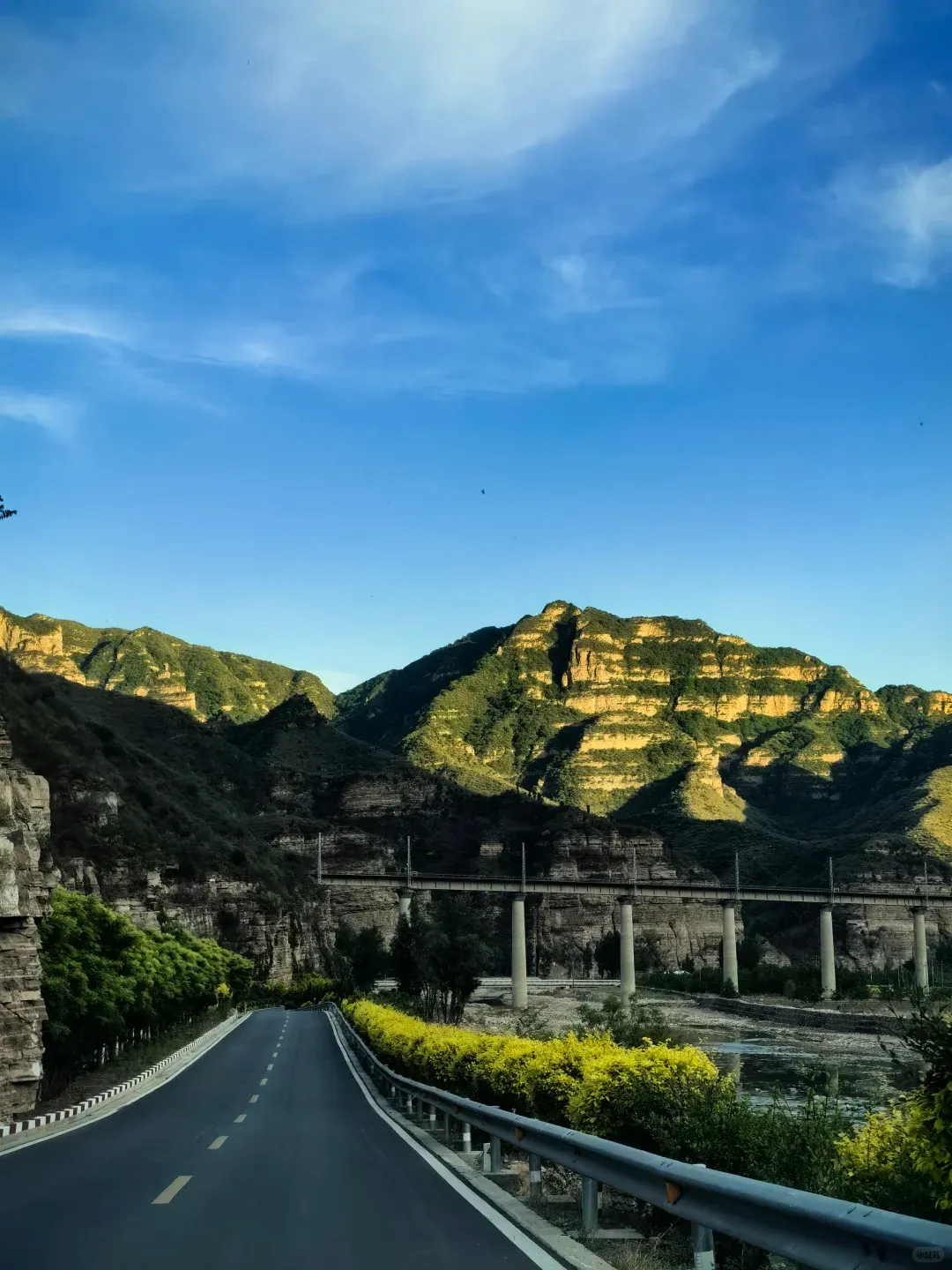 填饱肚子,我们驱车前往「百里山水画廊」。这不是一个需要买票排队的封闭景区,而是一条沿着漳河蜿蜒的公路。