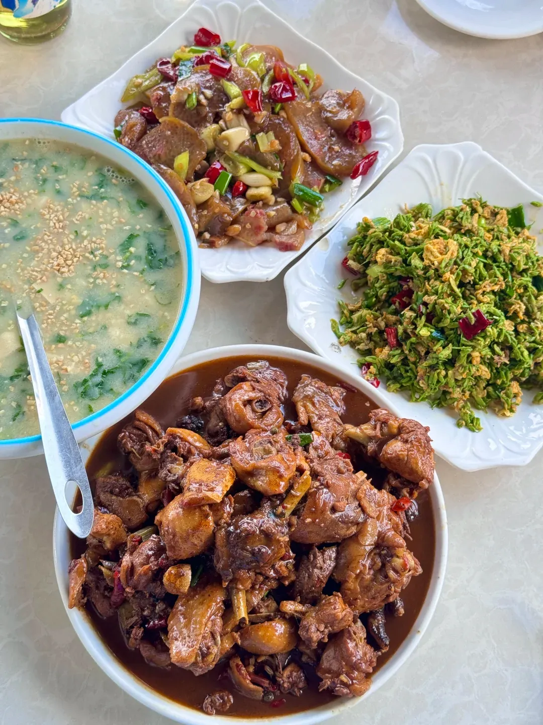 中午的饭食,我们选在了山脚下的农家院。这个时节,来山里必须要吃的就是那一抹新绿。