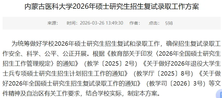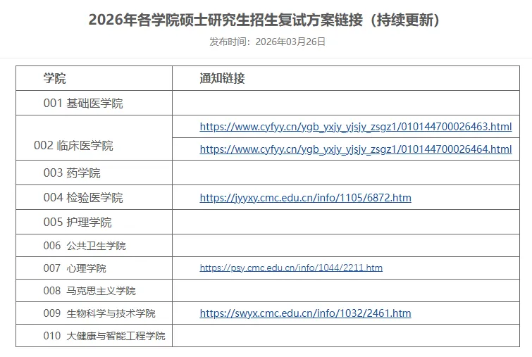 最新发布26考研复试细则的院校有: