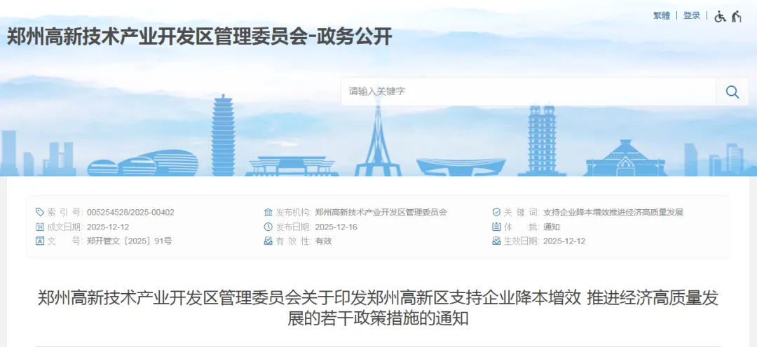 郑州高新区支持企业降本增效推进经济高质量发展的若干政策措施