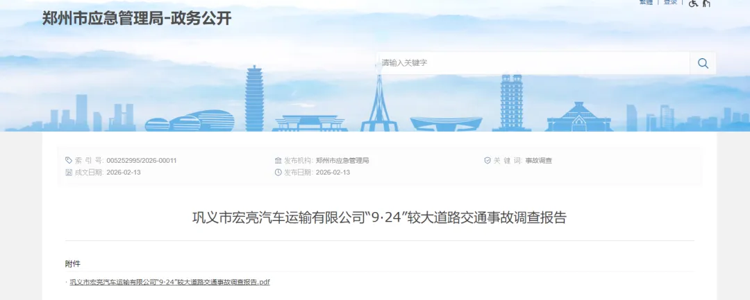 经调查认定,郑州巩义市宏亮汽车运输有限公司“9 · 24”较大道路交通事故是一起无从业资格证驾驶人员违法驾驶超载货运车辆,未按照操作规范安全驾驶,货运单位安全生产管理缺失,货运源头单位不履行源头管理责任,行业主管部门安全监管不力造成的生产安全责任事故。
