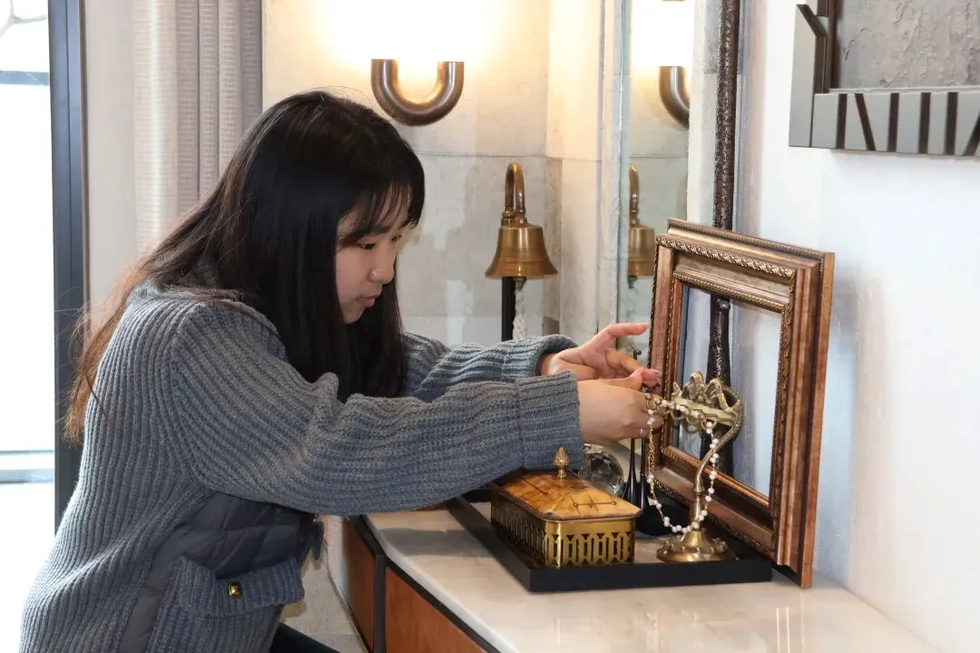 学生们驻足细观工艺细节,从精细化收口到场景化灯光,从人性化收纳到智能联动,眼神中充满对专业的热爱。有同学感慨:“藏在细节里的用心才是真正的好房子。”