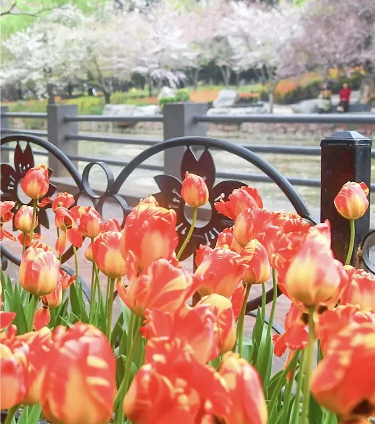 红的热烈、黄的明亮、粉的温柔、紫的浪漫,20万株各色郁金香交织成片,宛如打翻了春天的调色盘。搭配园内盛开的樱花,漫步其中,花香四溢,随手一拍都是春日大片。