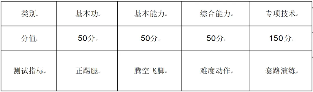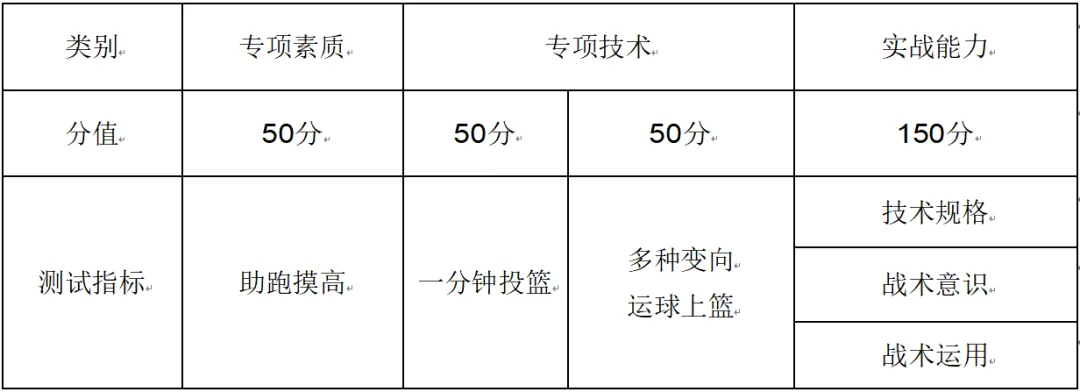 2.专项测试指标与所占分值