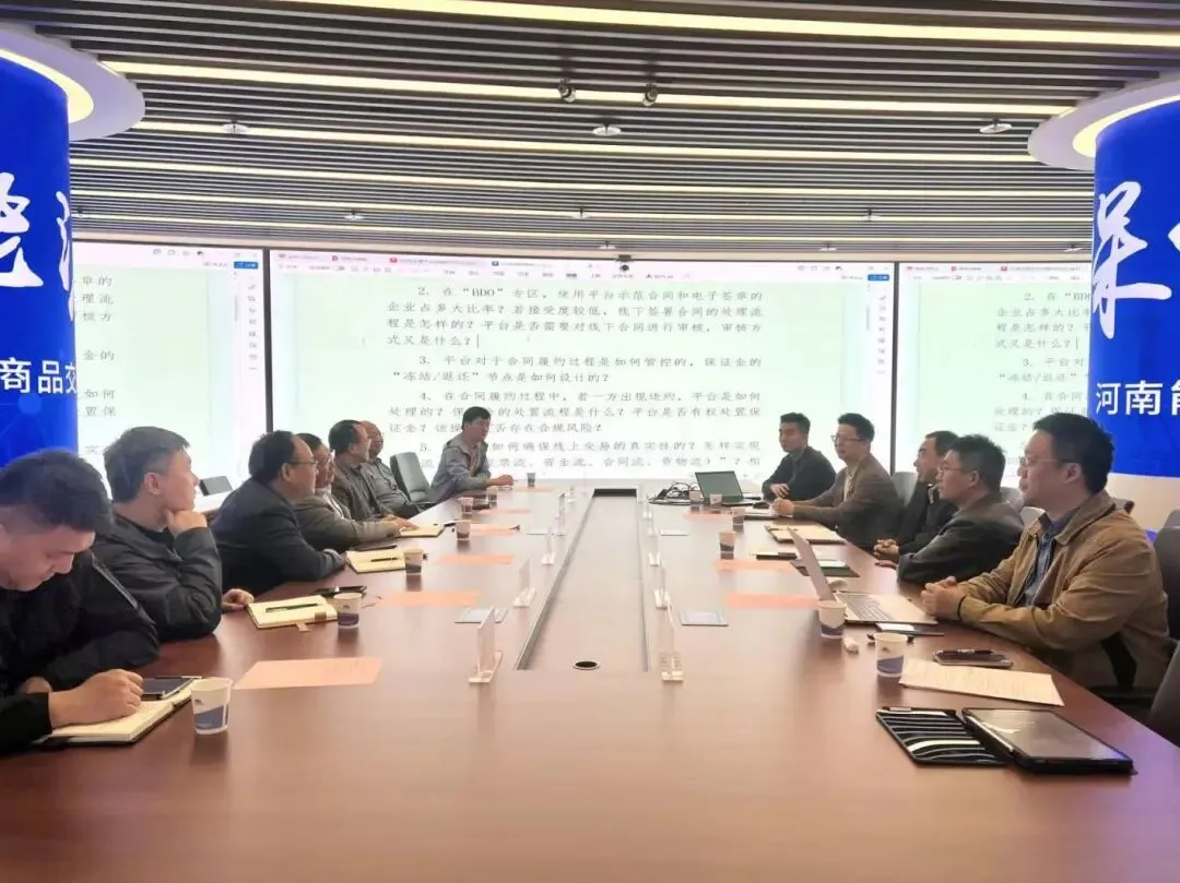 3月26日,河南国贸集团总会计师吴学旭与来访的郑州航空港商品服务有限公司总经理邱涛进行座谈。双方围绕大宗商品交易线上服务行业发展趋势、运营等方面进行交流。