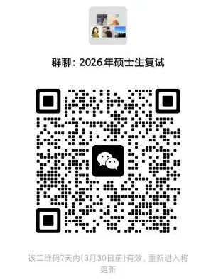 仅限2026年参加我院一志愿复试的考生入群!申请入群理由请写明“姓名—报考专业名称—手机号”,入群后请立即修改昵称为“姓名—报考专业名称—手机号”。敬请理解与配合。