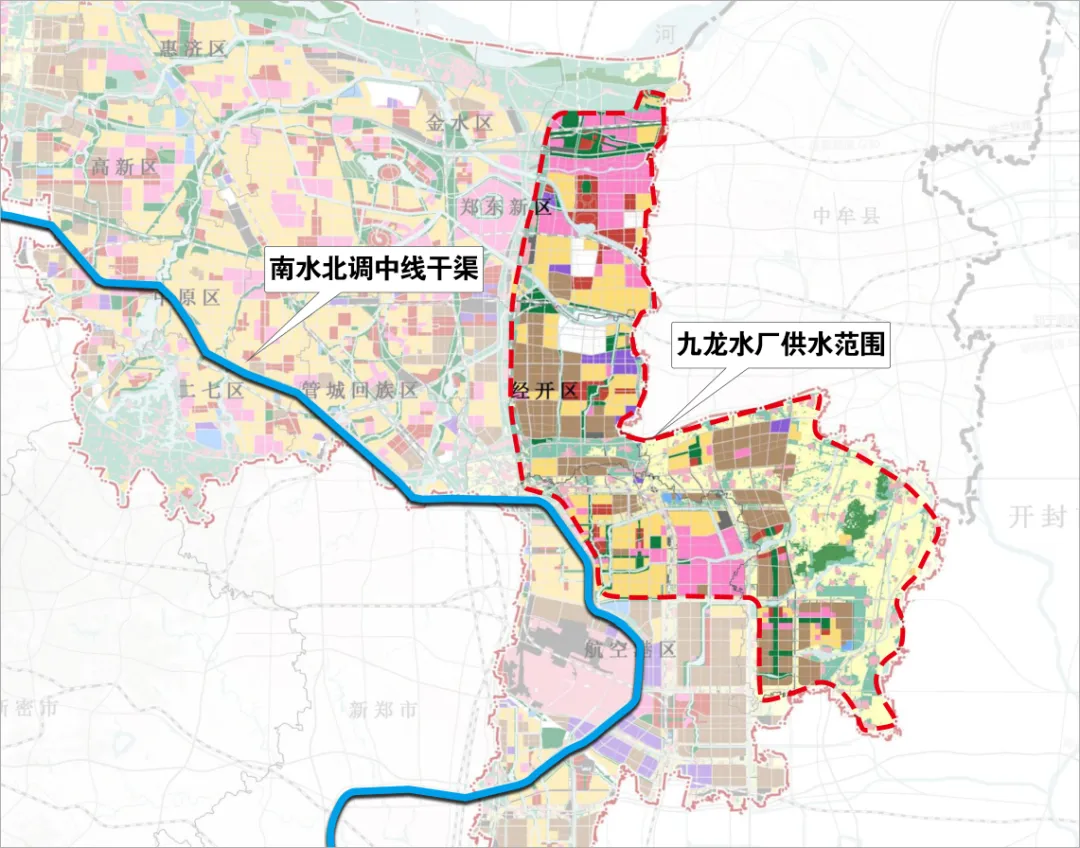 按照初步规划服务范围,项目将重点覆盖经开区九龙组团、郑东新区白沙组团、中牟县郑庵镇、姚家镇、韩寺镇、黄店镇、刁家乡等南部乡镇以及航空港北部片区,全面提升区域供水保障能力。