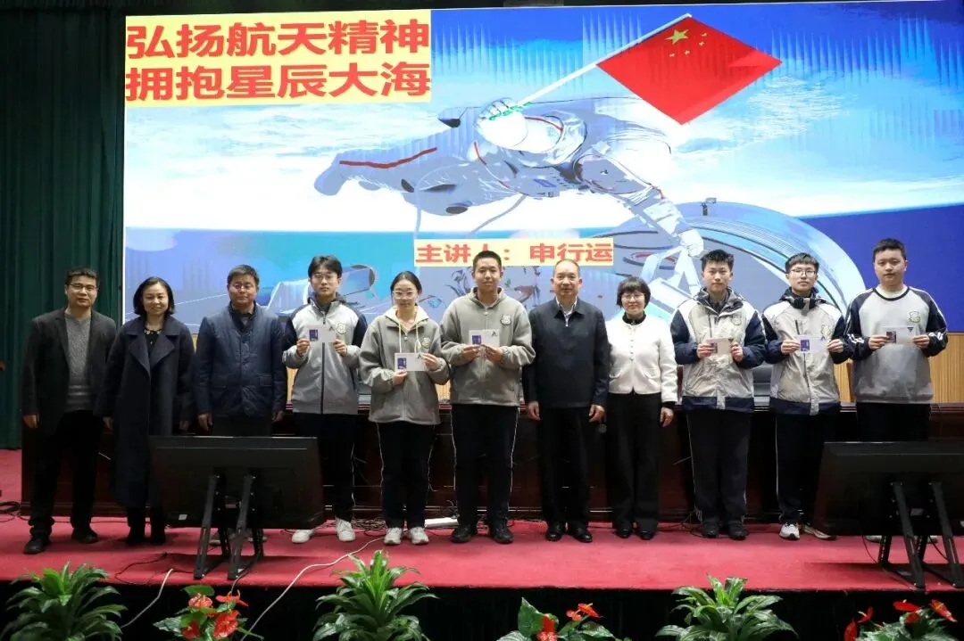 为厚植家国情怀、涵养科学精神,推动科技教育与思政教育深度融合,近日,郑州市第九中学特邀航天专家、中国人民解放军航天员大队首任大队长申行运大校走进校园,带来一场振奋人心的航天科普专题讲座。学校党委书记周继莉、校长袁伟民、科技副校长李沛出席并全程聆听,教务处副主任丁东奎主持。航天故事进校园,精神力量润心田