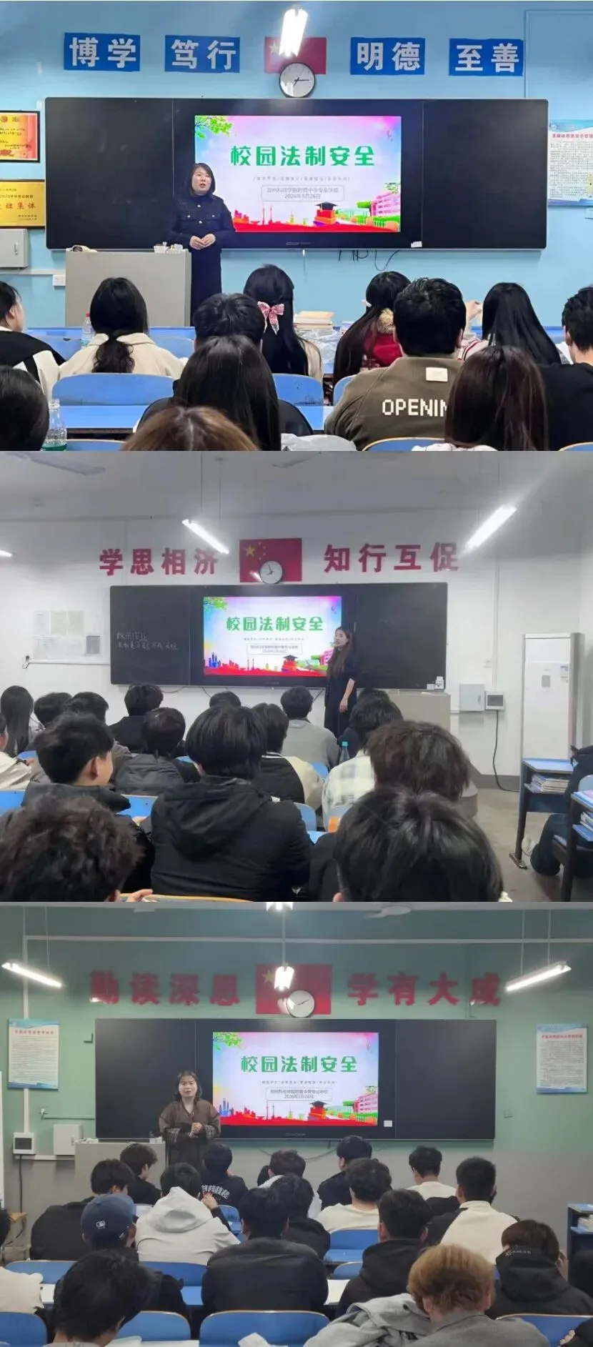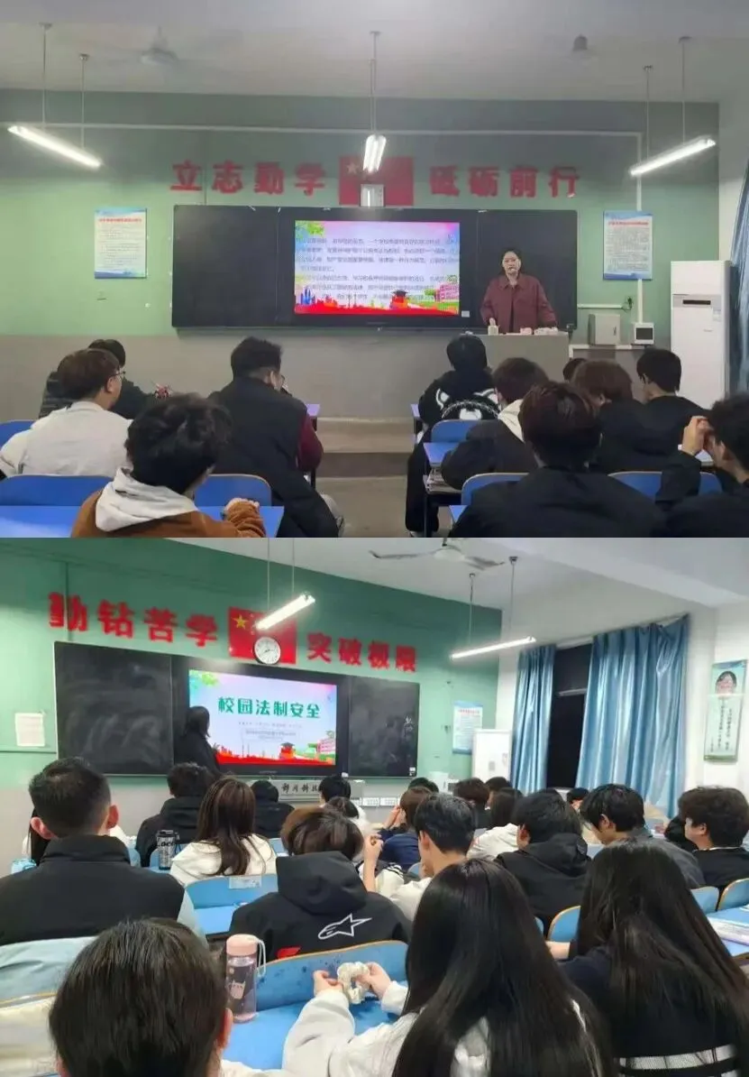班会上,各班班主任向同学们阐述了法律的定义及学习法律的重要性,明确指出法律是保护个人权益的重要工具。老师们结合《中华人民共和国宪法》《中华人民共和国民法典》等法律法规,介绍了故意伤害、帮信、赌博、盗窃等易发生在学生群体中的犯罪行为及相关案例,着重强调了控制情绪、避免冲动行事的重要性。