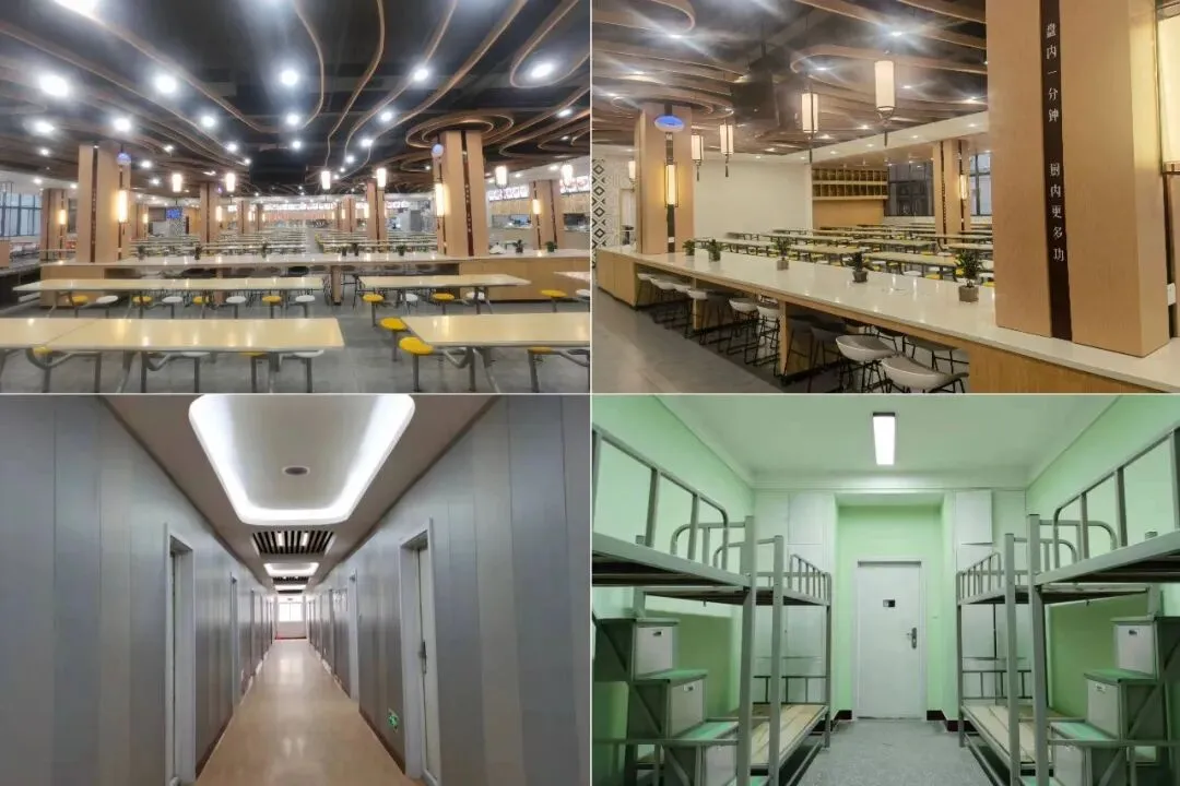 学校拥有1.2万㎡标准化学生公寓和供2000人同时就餐的两大校园餐厅,中央空调,环境优雅,餐厅菜品丰富,美味可口。公寓为6-8人间,有独立卫生间和洗衣间,太阳能洗浴,有空调和暖气,充分满足学生的生活需求。