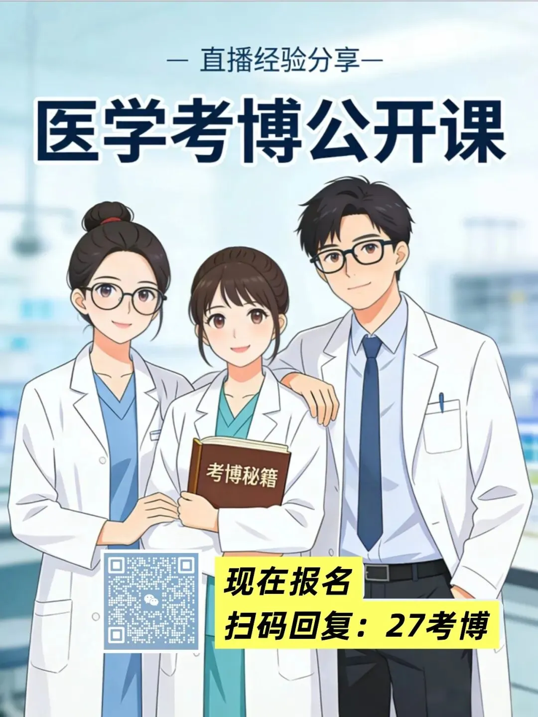 具体群里通知,公开课扫码报名,回复:“27考博”即可。