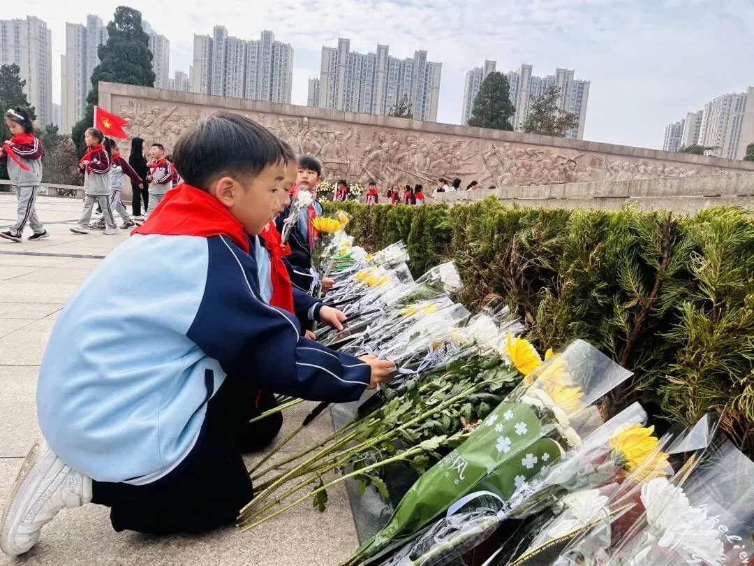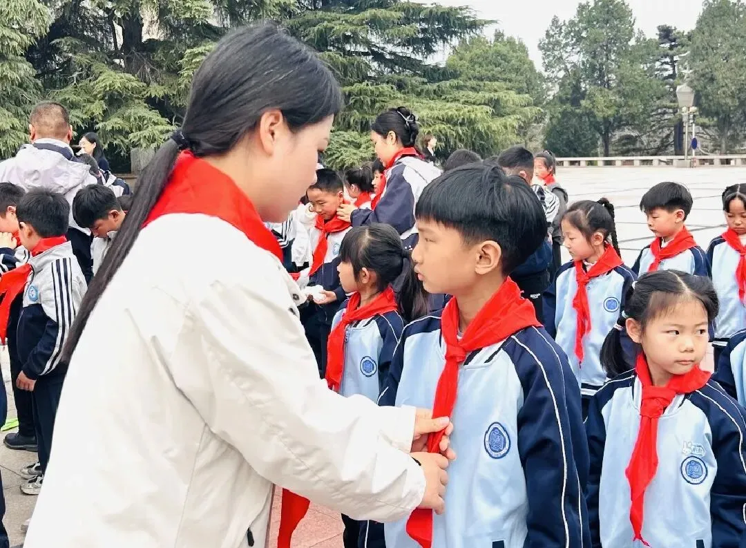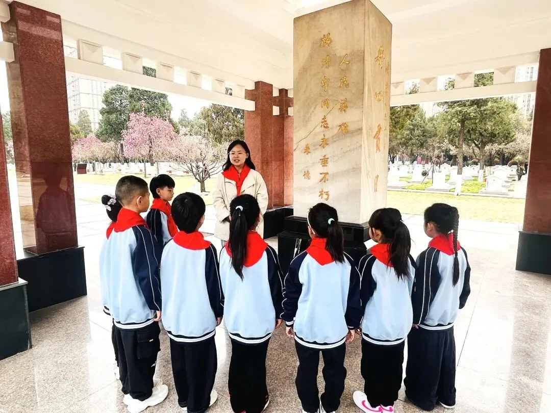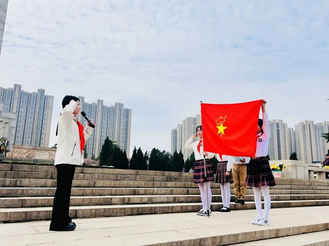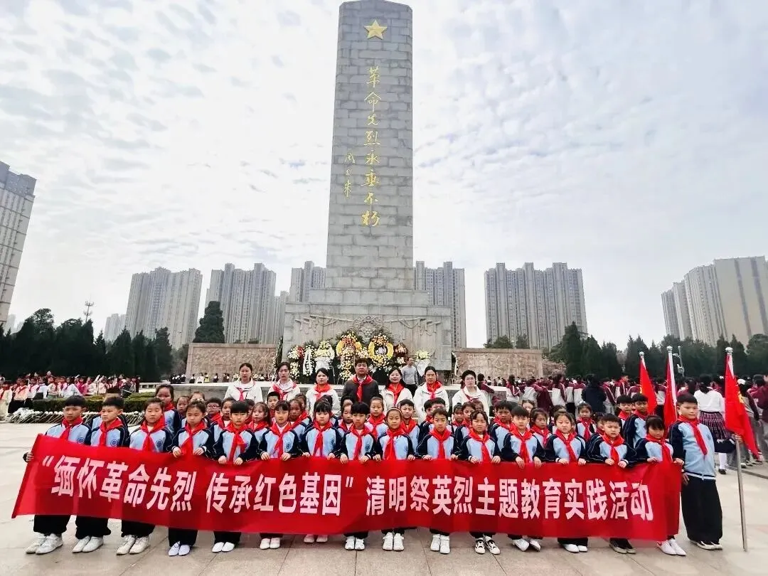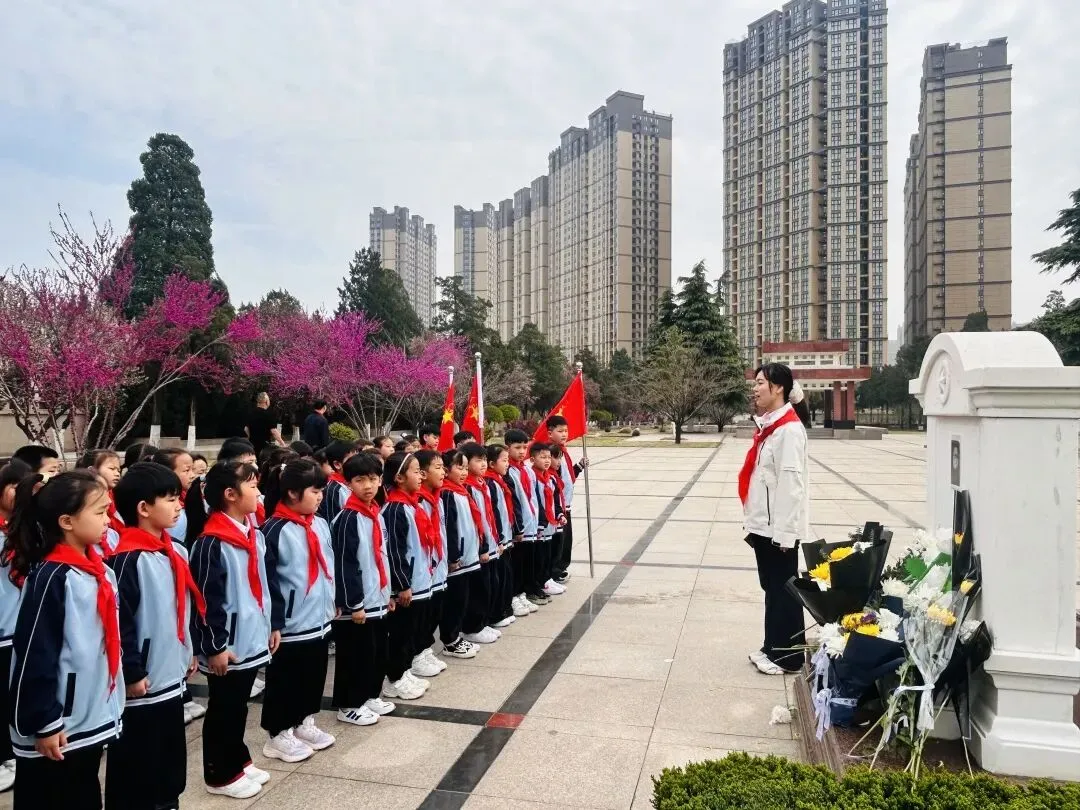清明时节,追思悠悠。为深切缅怀革命先烈,传承红色基因,弘扬爱国主义精神,2026年3月26日上午,郑州市中原区西郡第二小学参加了郑州市实验小学教育集团在郑州烈士陵园开展的“红领巾心向党 英烈精神永传承”清明祭扫主题教育活动暨新队员入队仪式。一年级中队辅导员及51名新队员参加了本次活动。