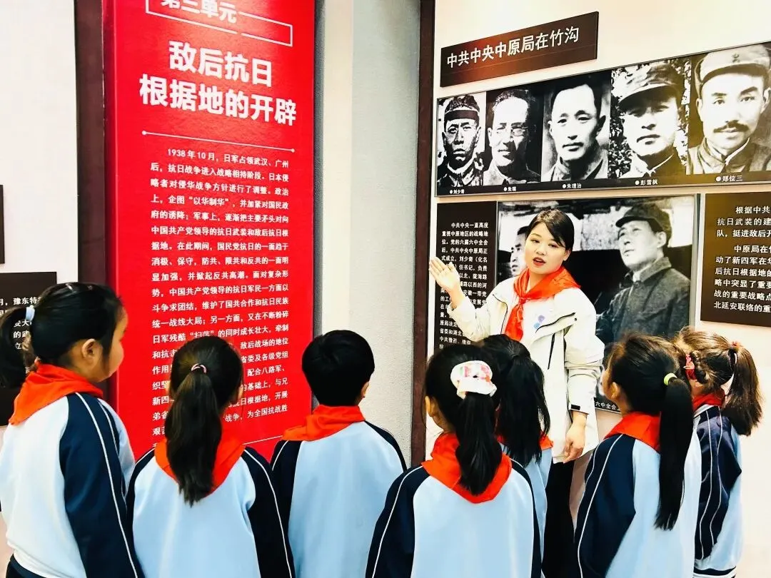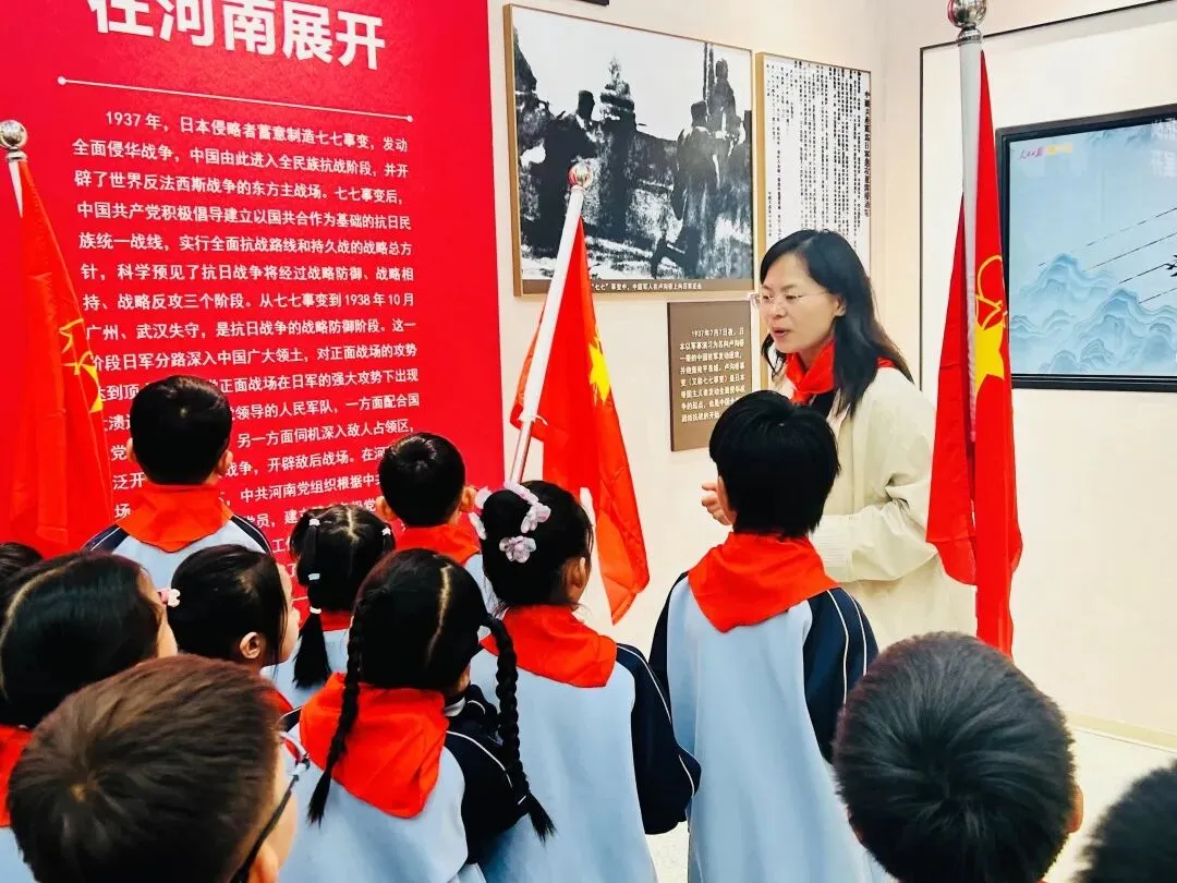 仪式结束后,师生集体前往国防教育馆参观。在馆内,大家认真观看历史影像资料,通过一幅幅珍贵照片,深入了解中原大地革命先辈的英勇事迹,感悟红色精神的深厚力量。