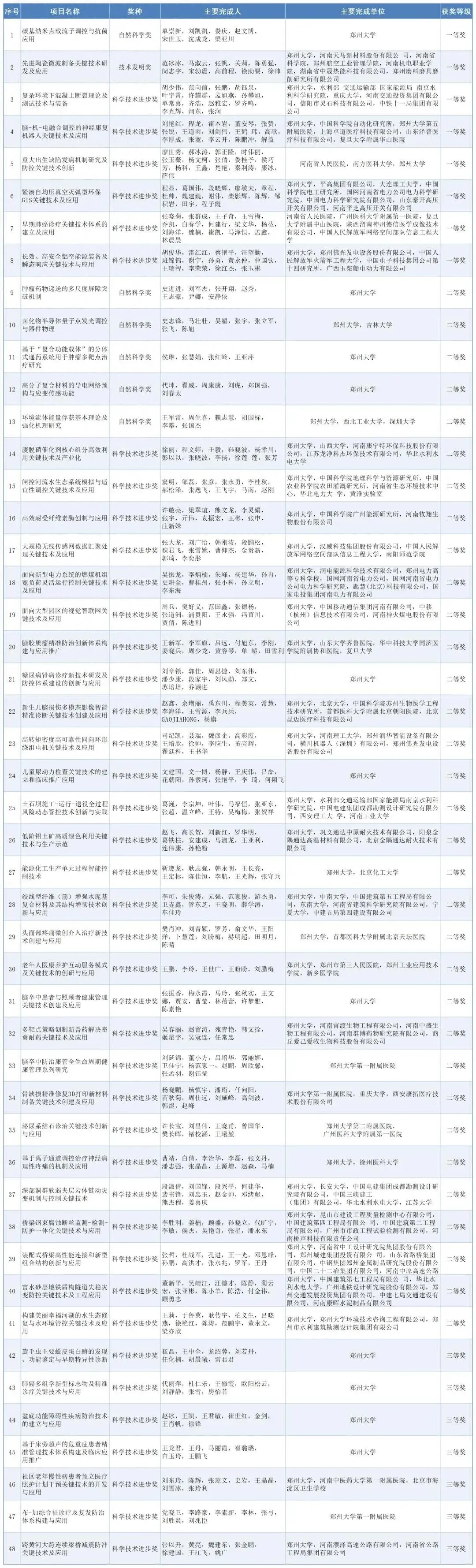 立足国家战略需求,聚焦科技创新突破,郑州大学此次获奖项目种类全面,包含自然科学奖、技术发明奖、科技进步奖,涵盖物理学、先进材料、水利交通、电气工程、生物医药、环境科学等多个重要领域。
