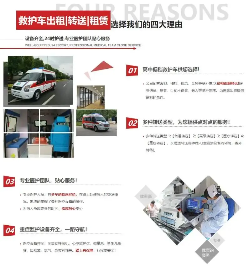 我们配备专业医护团队(持证上岗)和全套急救设备,实行透明收费标准,无隐形消费,签订书面协议,明确收费明细。郑州各区县均有服务网点,市区30分钟内抵达,偏远区域1小时内抵达,支持郑州与全国各省市双向跨省转运,以及本地短途护送、出院转院、遗体转运等全场景服务。24小时客服在线,可根据患者病情定制专属转运方案,熟悉郑州各医院周边路线,避开拥堵路段,实现“床到床”无缝转运,无论你在郑大一附院、省人民医院等哪家医院,均可随时咨询预约。