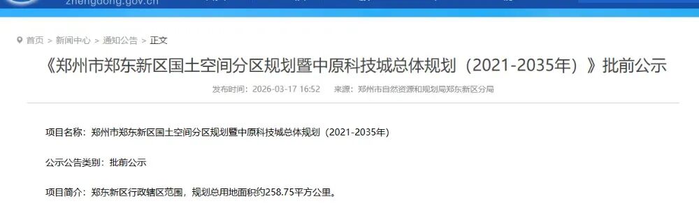 郑州市郑东新区国土空间分区规划暨中原科技城总体规划
