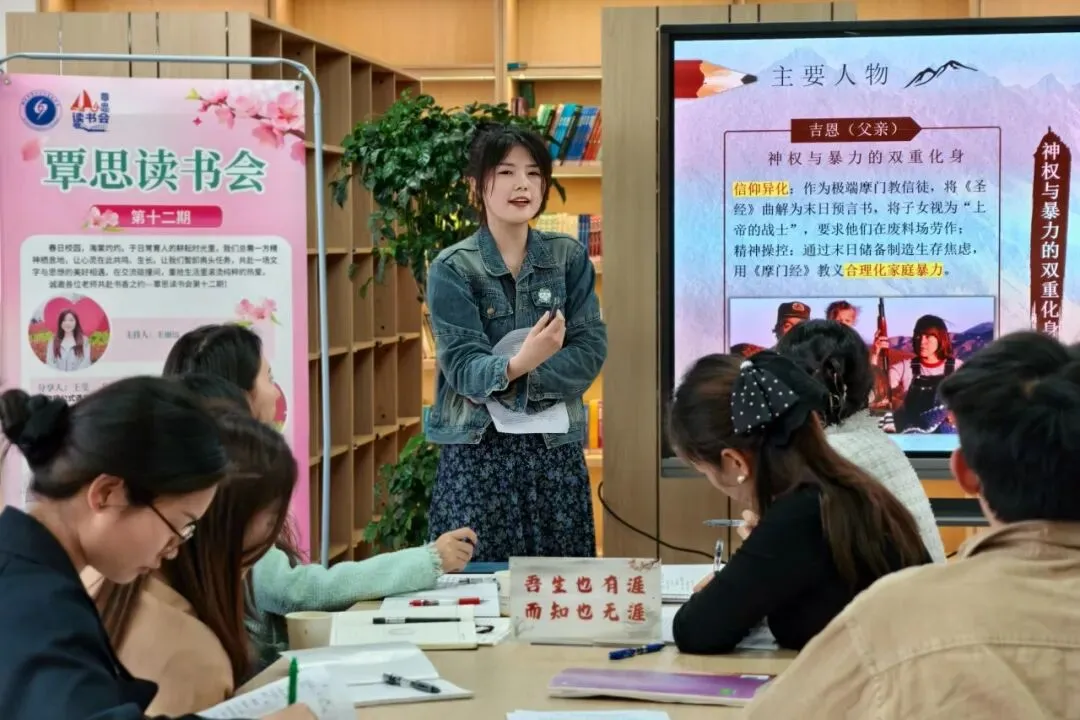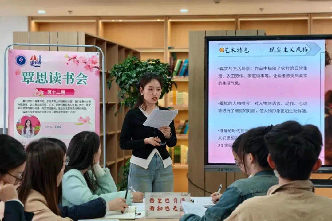 春日校园,海棠灼灼。为进一步营造浓厚书香校园氛围,搭建师生思想交流、精神共长的平台,3月26日下午,郑州市第四十四高级中学“覃思读书会”第十二期活动在图书馆五楼温情启幕。在主持人王丽远老师的引导下,各位老师暂别忙碌的教学工作,与同学们一同围坐共读,共赴一场文字与思想的美好相遇,在畅谈与碰撞中,重拾对生活、对教育、对成长的滚烫热爱。