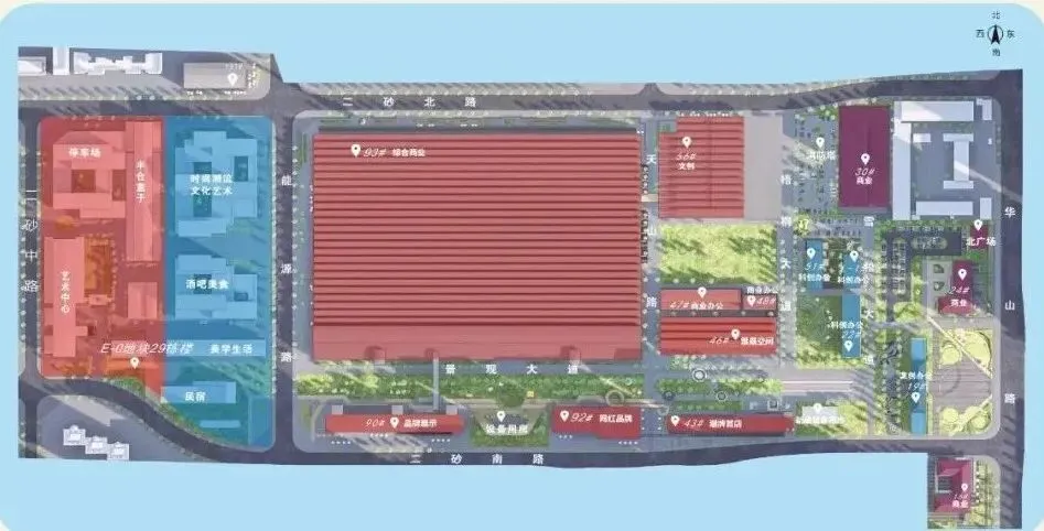 二砂文创园位于郑州市中原区华山路78号。前身为中国第二砂轮厂旧址,“二砂”有亚洲最大的包豪斯建筑单体,是新中国“一五”期间兴建的重点工业项目之一,是新中国工业历史的重要参与者和见证者。二砂文创园项目总占地约845亩,共分四期修缮改造;首开区占地100余亩,总建面约5.7万平方米,以办公大楼、中、小包豪斯及南北配楼为主,重点打造园区品牌展示中心、二砂历史记忆博物馆、文创企业、网红业态经济。中国第二砂轮厂这座由东德卡尔・马克思城工业设计院主持建设的工厂,与北京798同宗同源,有着鲜明的包豪斯建筑风格,1956年正式动工、1964年全面建成投产。1、二砂的独特,在于它不仅是一座退役工厂,更是新中国工业发展史的“活化石”。2019年,第二砂轮厂旧址被国务院公布为全国第八批重点文物保护单位,园区内现存34栋保留完好的工业建筑,其中7栋为国家级文物保护建筑、7栋为市级历史近代优秀建筑。最具代表性的陶瓷砂轮制造车间,单层建筑面积达7.5万平方米,是亚洲最大的包豪斯建筑单体,具有极高的稀缺性和历史文化价值。2、“保护与新生”:秉承“保护为主、活化利用”的理念,严格保留工业遗存原貌、精心修复历史建筑、拆除影响整体风貌的冗余建筑,同时巧妙将高颈烟囱、生锈管道、老旧机床等工业印记,与现代创意、文化产业、科创元素深度融合,打造出集文化、创意、休闲、科创于一体的复合型文创园区。3、2020年二砂文创园正式开园,园区一期、二期已全部开放,累计入驻近60家企业与商铺,完成了从“工业锈带”到“城市秀场”的华丽转身。4、定期举办各类产业交流活动;园区内部配备共享图书角,儿童休闲区等公共设施,以及文创小店,咖啡馆等休闲场所,提升企业办公环境的舒适性和便利性。包豪斯建筑群内,艺术展览、文创市集、青年创新市集轮番上演,工业元素儿童游乐场让孩子们在玩乐中触摸工业历史,老厂房真正实现了“见人、见物、见生活”的活化新生。