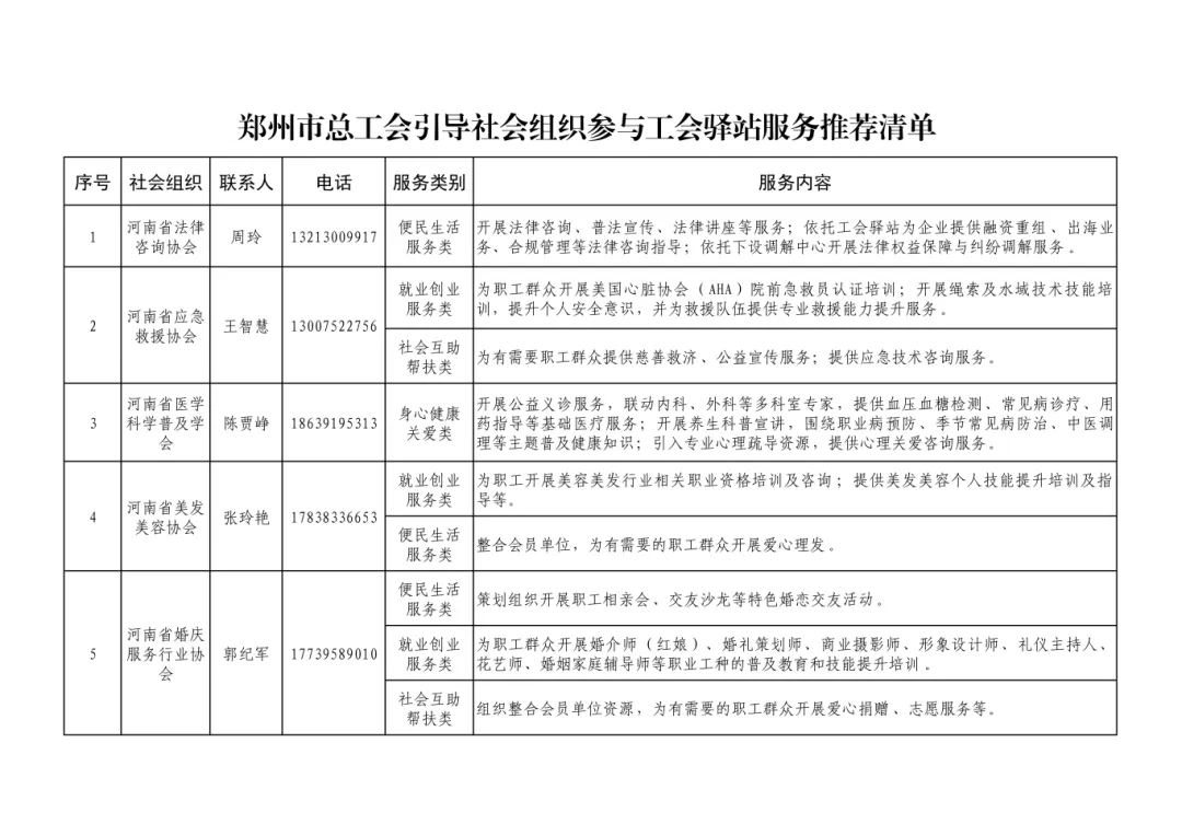 郑州市总工会引导社会组织参与工会驿站服务推荐清单来了!
