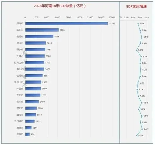 2025年全国GDP排名出炉的时候,不少关注河南发展的人都捏了把汗,郑州以15244.6亿的成绩排在全国第16位,675亿元的增量、5.4%的实际增速稳得住基本盘,而省内另一座城市的风头甚至隐隐盖过了省会。