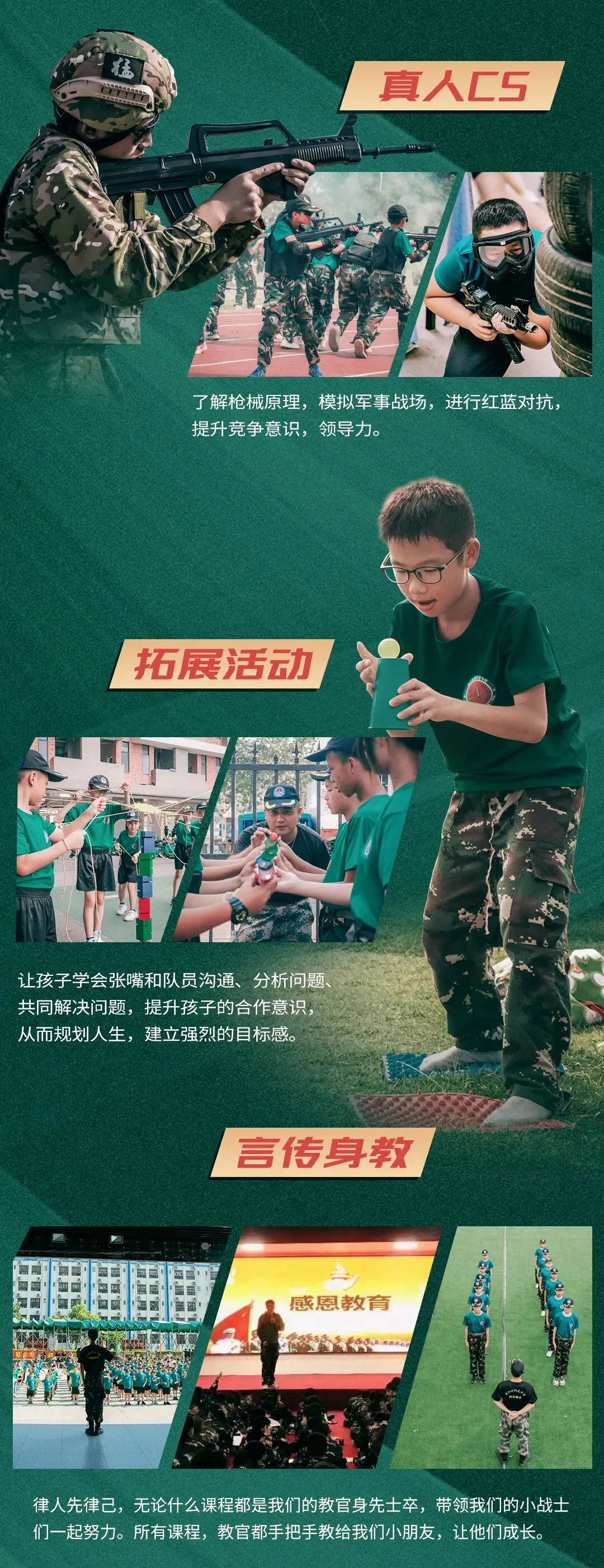 20-25人为一个班;主教官,班主任,生活老师;另外还有医护团队的,安全保障员,摄影老师等