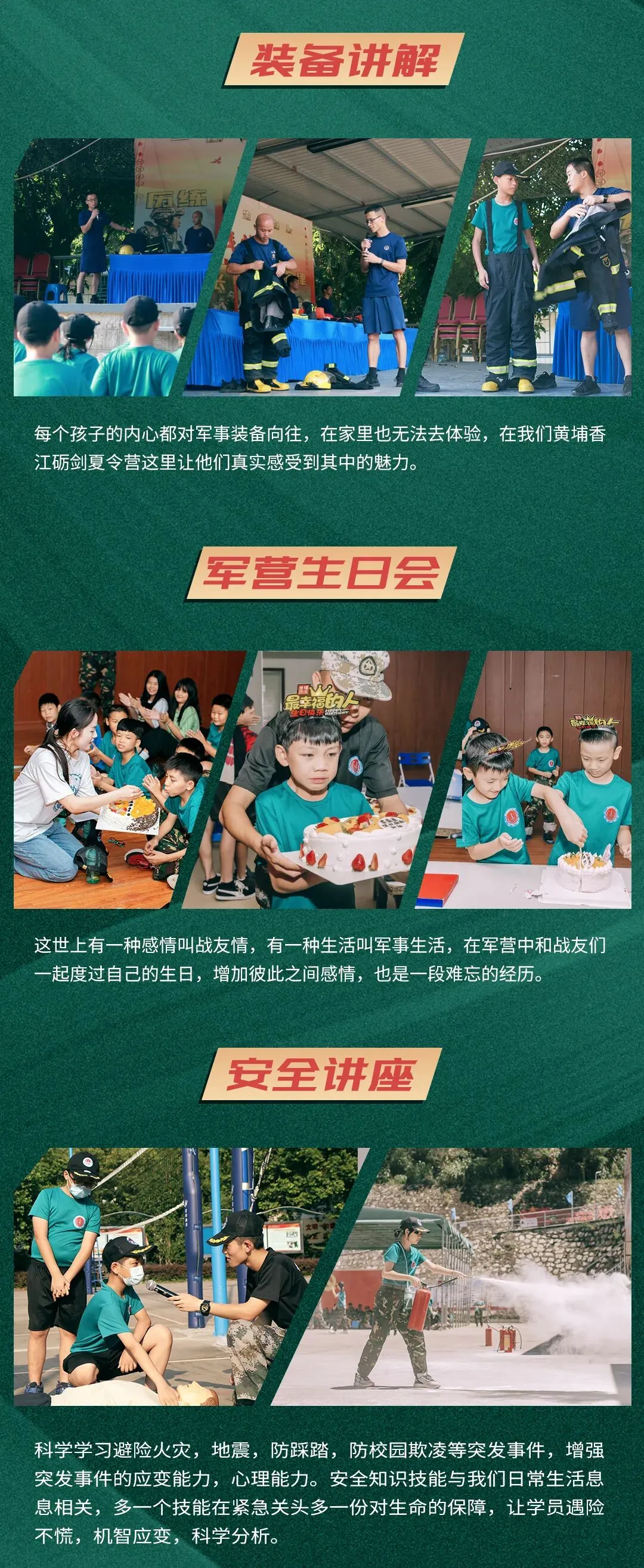 住宿安排:标准的8-10人间,配有:空调,热水器,独立洗浴间,床铺,枕头,被子,保证小战士入营有充足的物资保障。