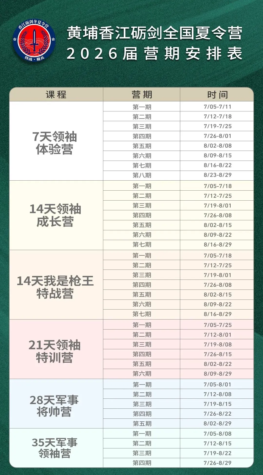 第一期:2026年7月05日-8月01日