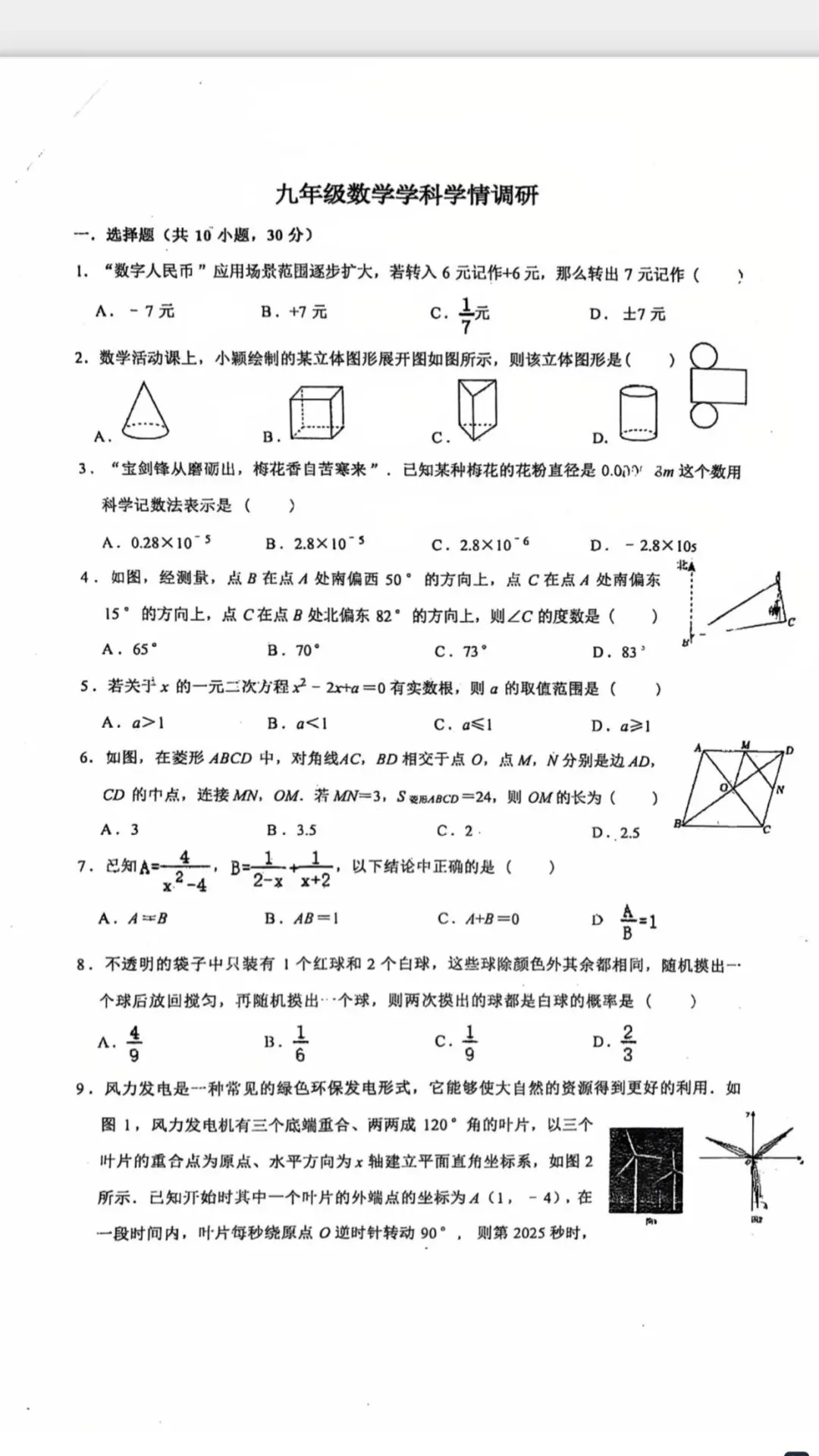 郑外2026开学考数学试卷,需要的家长可以评论区回复需要,免费发给大家,电子版可打印。