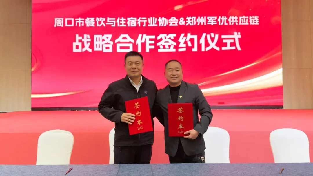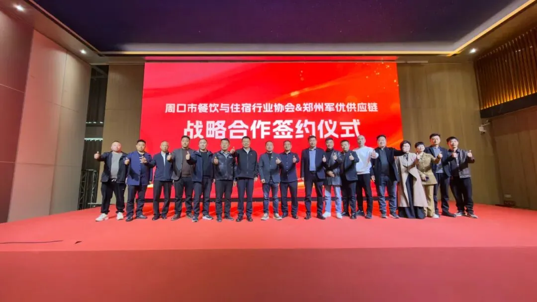 在全场嘉宾的共同见证下,周口市餐饮与住宿行业协会与郑州军优供应链正式签署战略合作协议,标志着双方将开启长期、深度的合作新篇章。未来,双方将携手搭建资源共享、互利共赢的行业平台,共同推动周口餐饮行业创新发展。