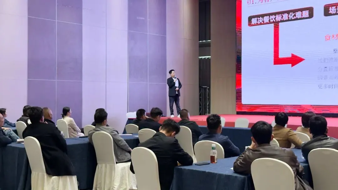 会上,军优供应链运营经理何宁与餐饮日配项目栗茉莉分别进行了军优供应链企业与日配业务的讲解,详细阐述了军优的发展历程、全链条服务体系及高效日配服务模式,让在场餐饮从业者对军优的服务能力与合作价值有了更全面的了解。