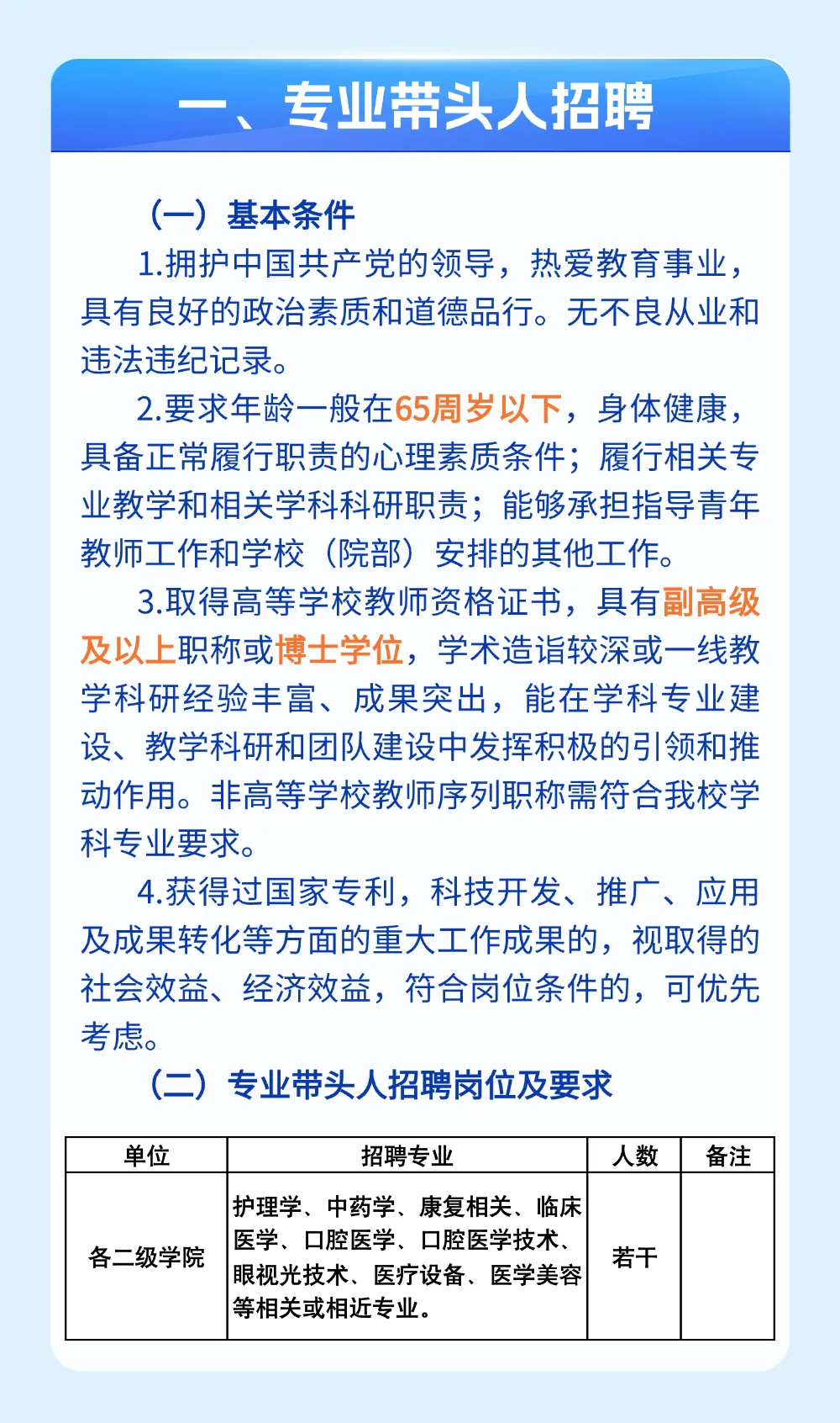 一、招聘基本条件
