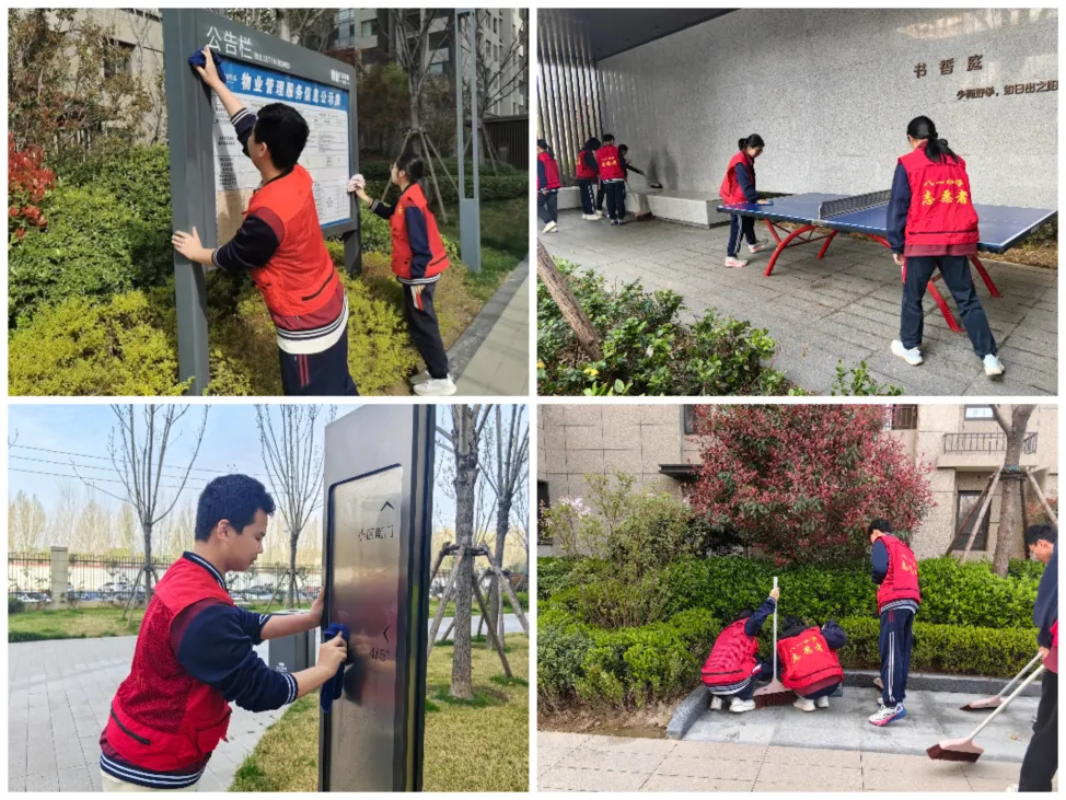 学雷锋的脚步不仅停留在校园,更延伸到了校外。学校团委组织积极分子志愿者走出校门,走进万华城珑府,开展社区清扫及周边环境整治活动。在社区,志愿者们分工协作,清扫路面垃圾、清理楼道“牛皮癣”,赢得了社区居民的连连称赞。
