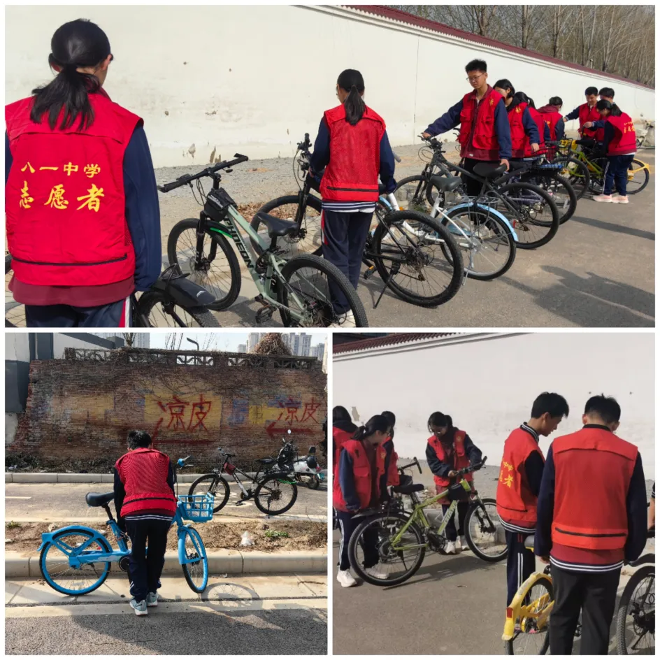 针对校园周边共享单车、自行车乱停乱放影响市容的问题,志愿者们开展了“让单车‘归位’,让文明‘入位’”的规范摆放活动。大家将路边横七竖八的自行车一一扶起,整齐地摆放到指定区域。经过志愿者们的努力,校园周边的摆放焕然一新,那一抹抹“志愿红”成为了街头最亮丽的风景线。