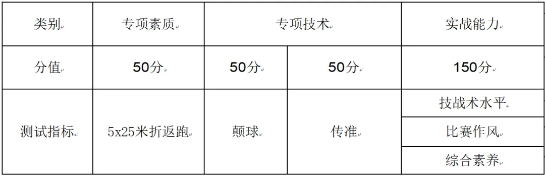 2.专项测试指标与所占分值
