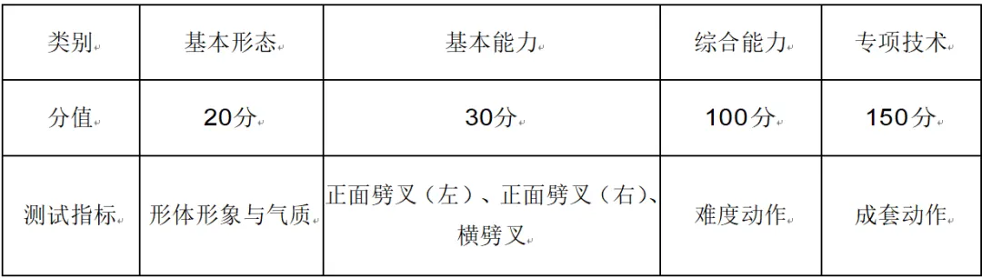 (一)舞蹈表演专业(国际标准舞。基本功考试100分,剧目表演200分,总分300分。)