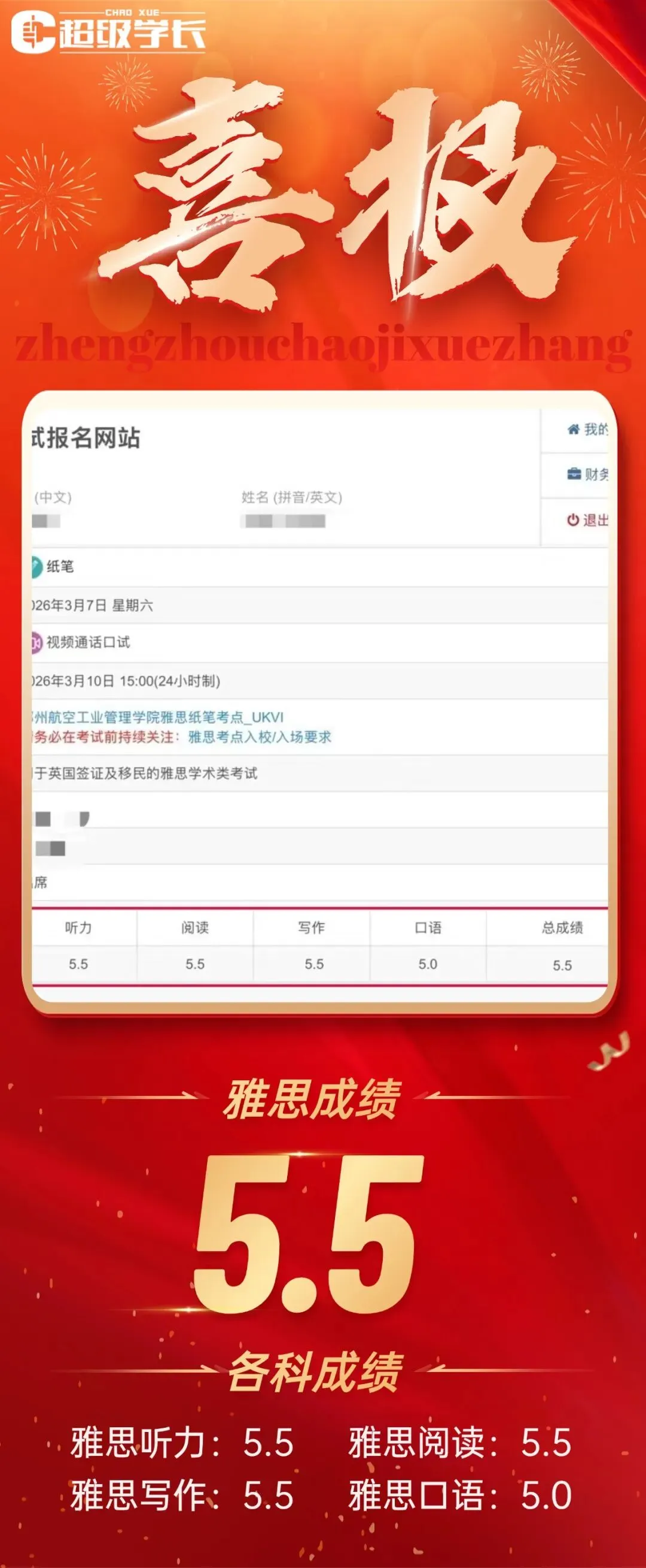 喜报喜报!!祝贺郑州超级学长雅思全日制突破班学员YYQ首考达标!