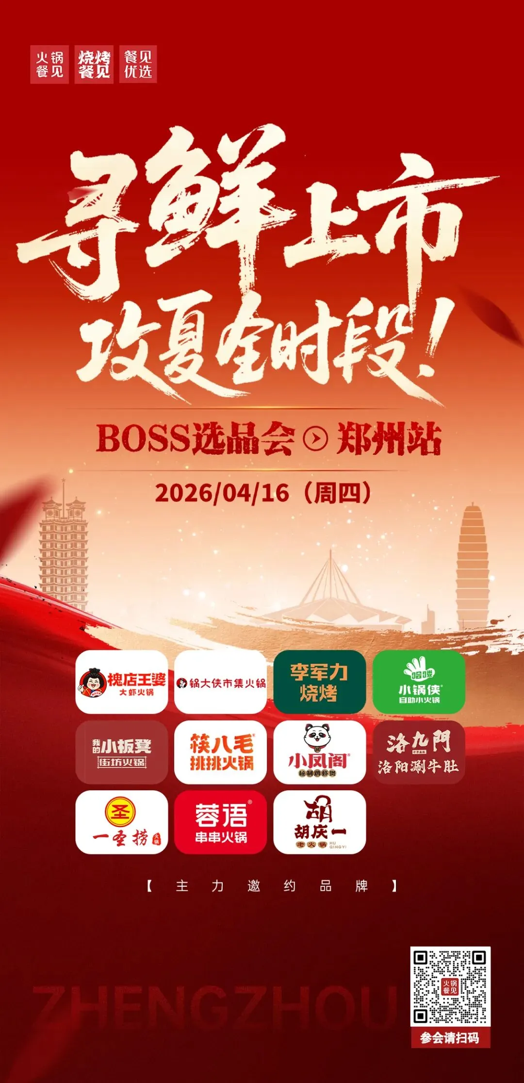 槐店王婆大虾火锅、锅大侠市集火锅、李军力烧烤、小锅侠自助小火锅、小板凳街坊火锅、筷八毛挑挑火锅、小凤阁秘制鸡虾煲、山重浪重庆耙耙火锅、一圣捞火锅、蓉语串串火锅、胡庆一老火锅等主力邀约品牌已确认参会。