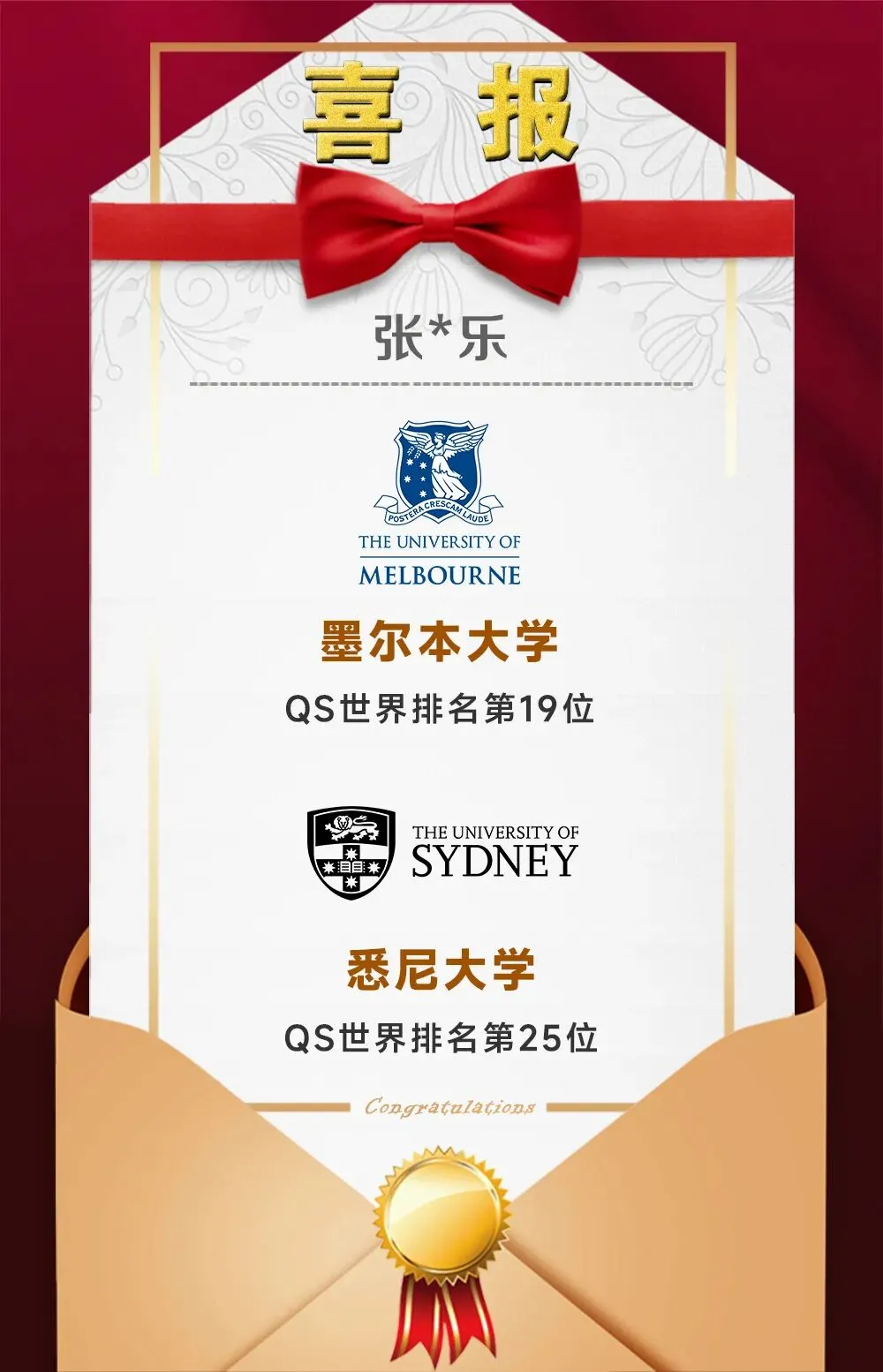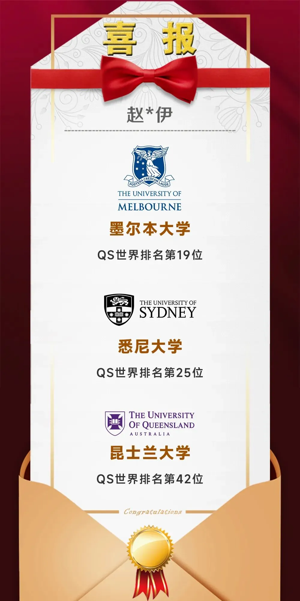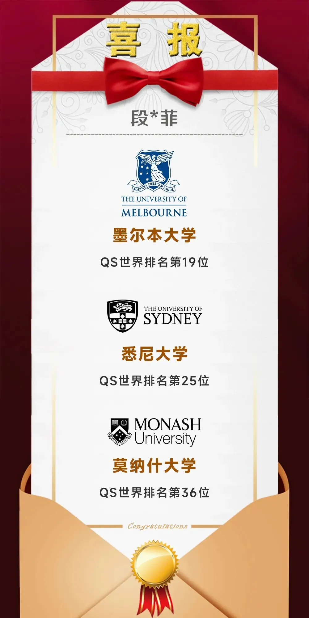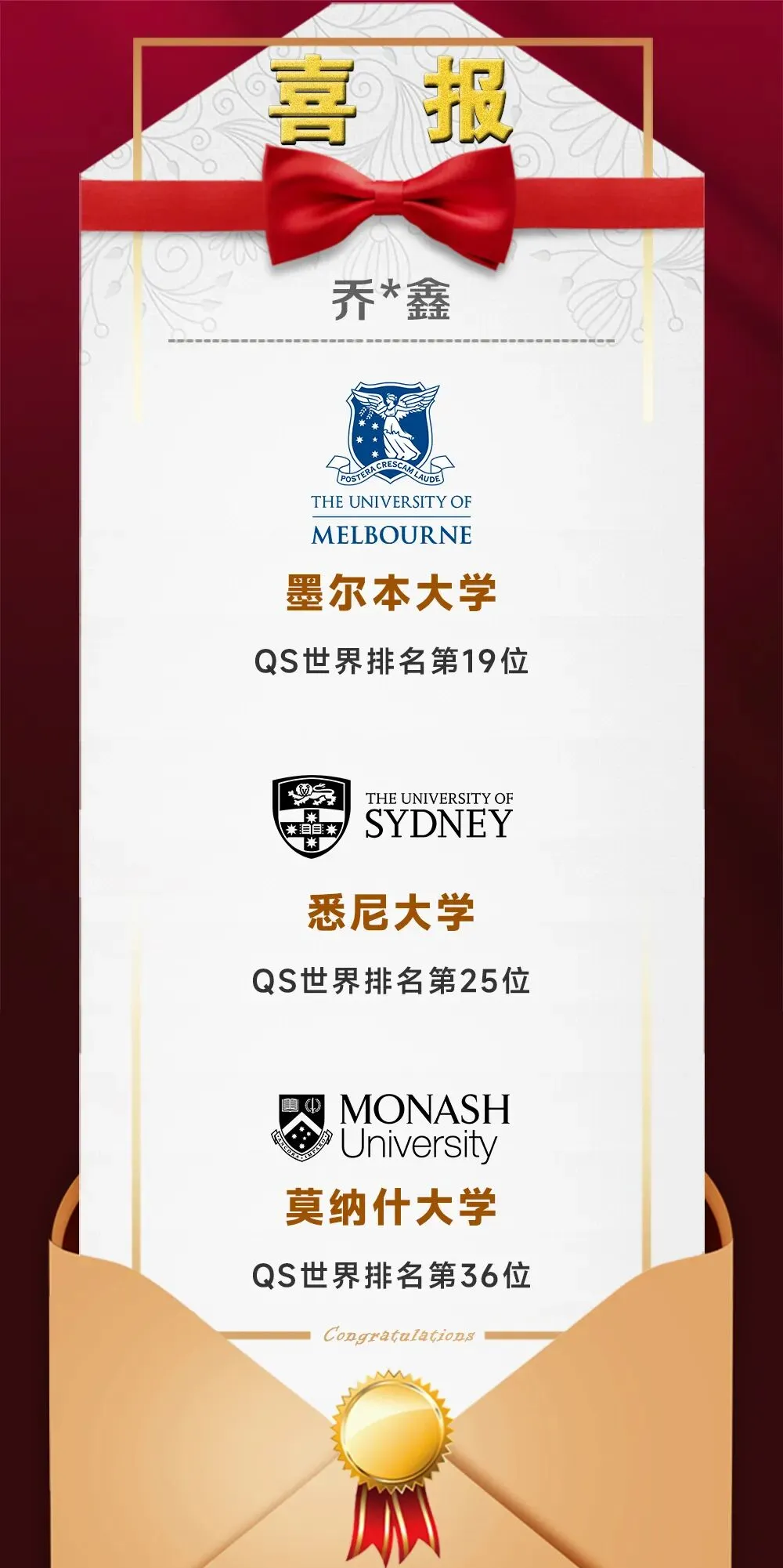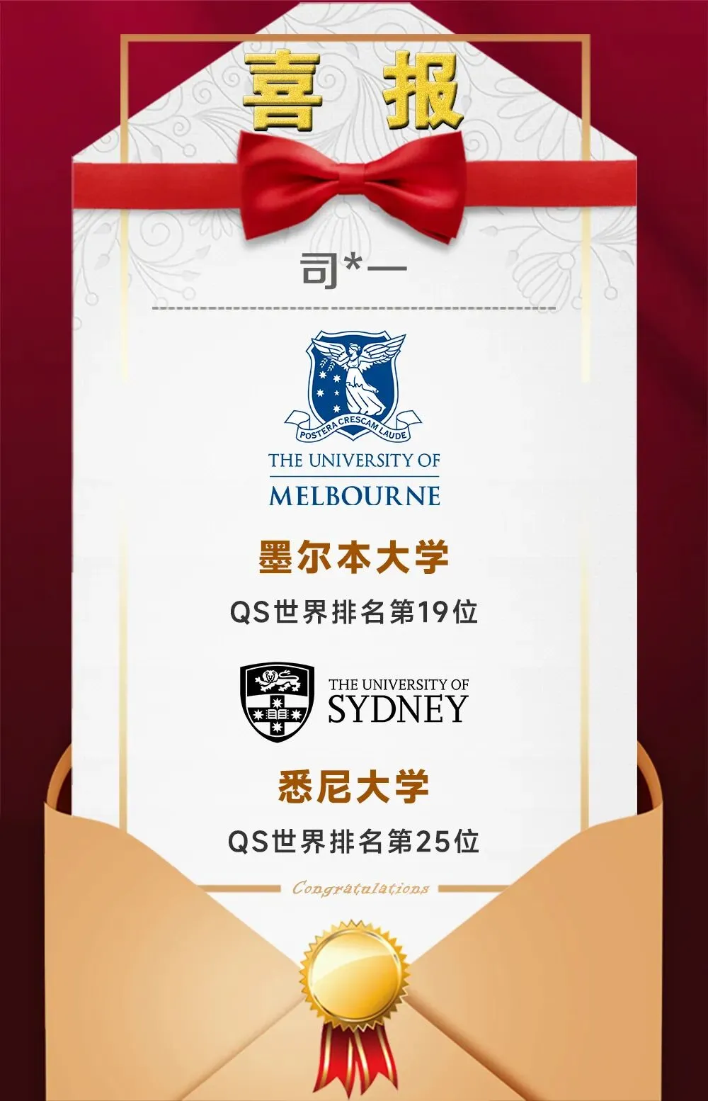 继剑桥大学、香港大学、香港科技大学、纽约大学阿布扎比分校、多伦多大学等多个国家名校录取后,郑州47中中美班&A Level班高三学子澳洲方向再传喜讯!