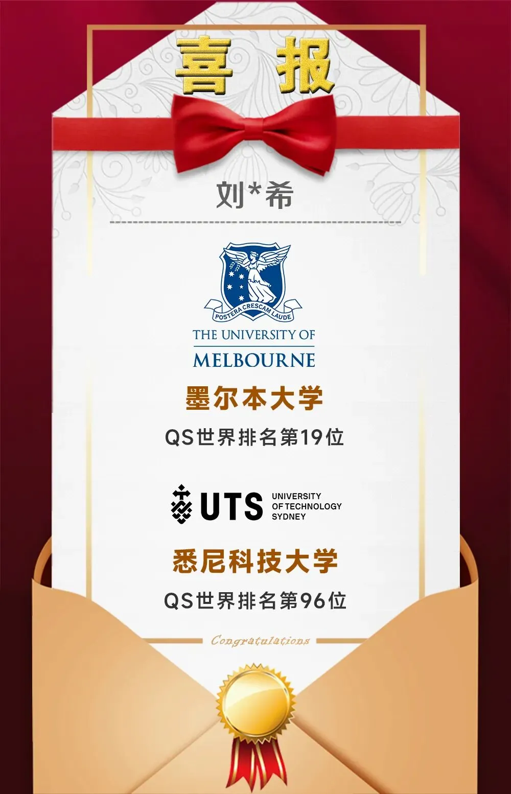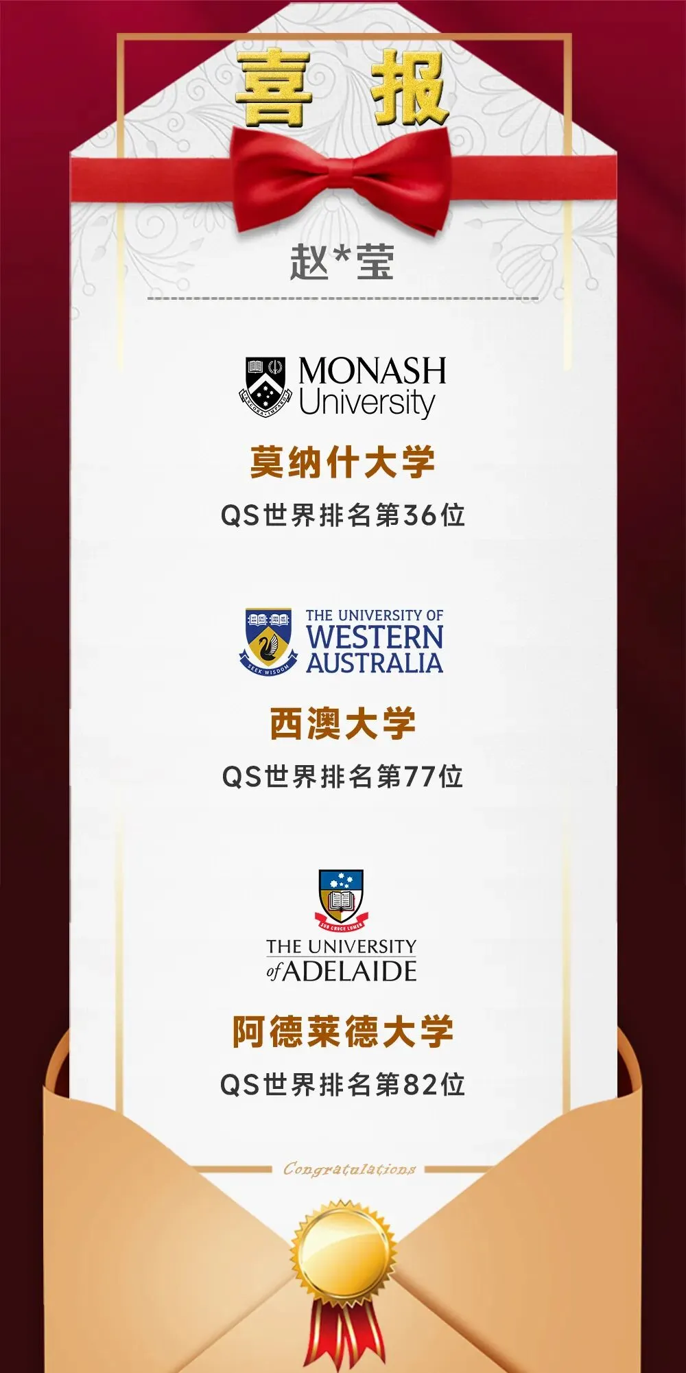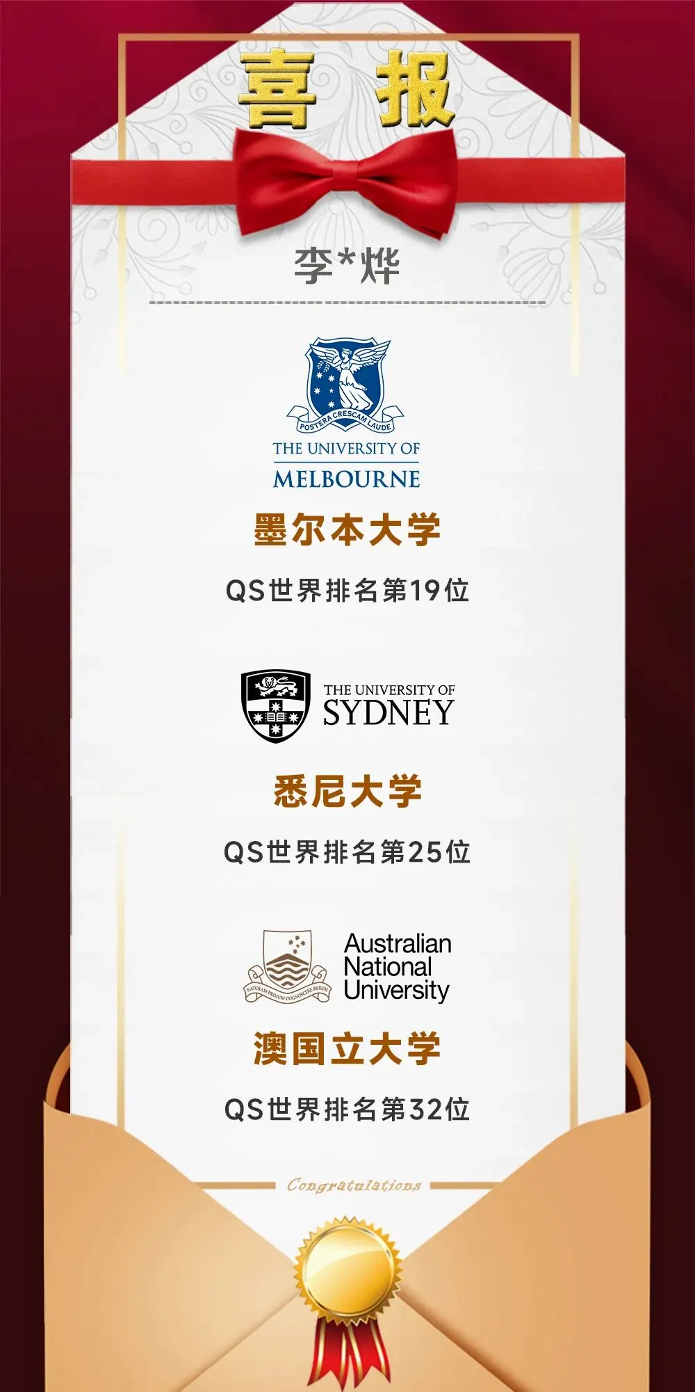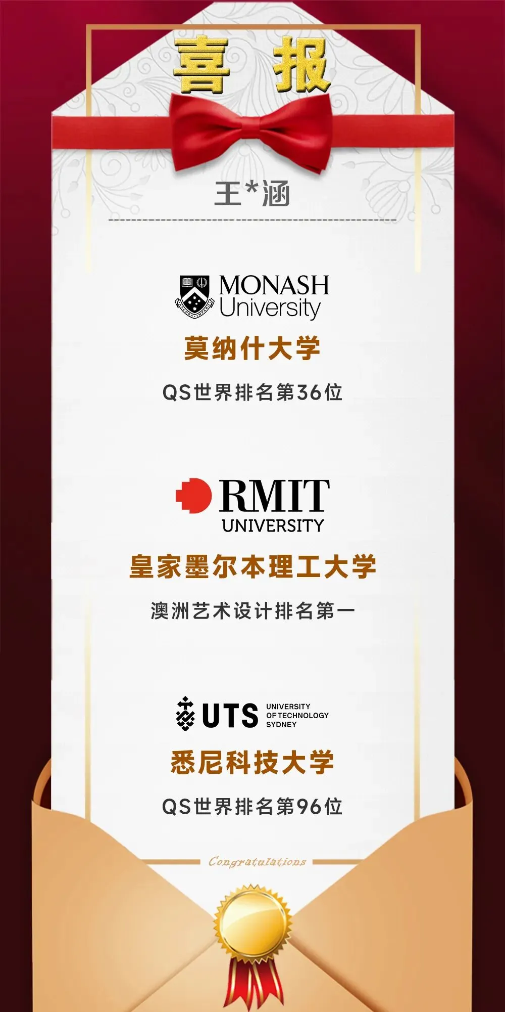 继剑桥大学、香港大学、香港科技大学、纽约大学阿布扎比分校、多伦多大学等多个国家名校录取后,郑州47中中美班&A Level班高三学子澳洲方向再传喜讯!