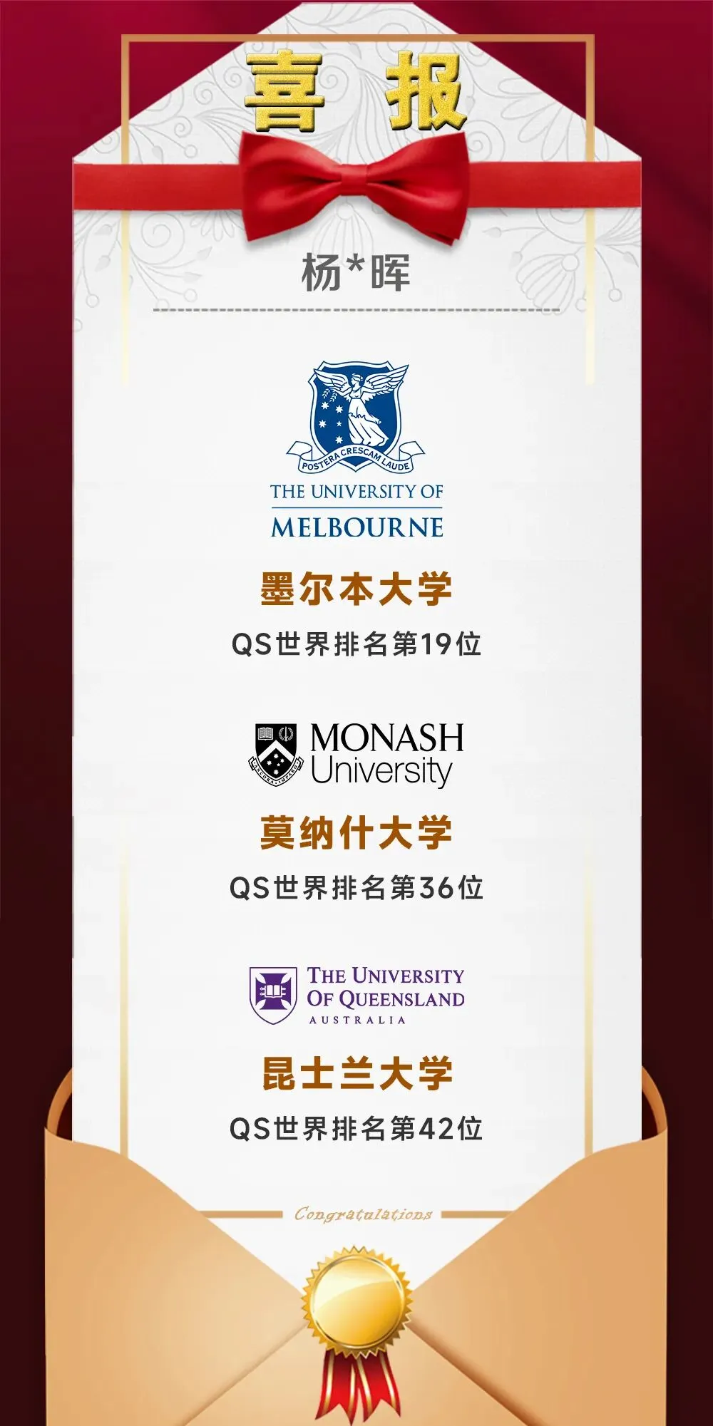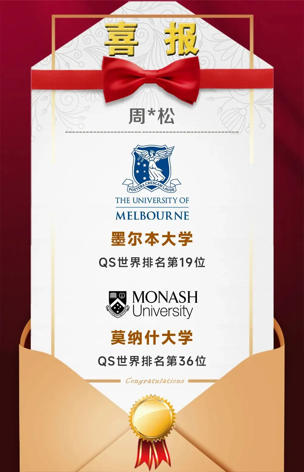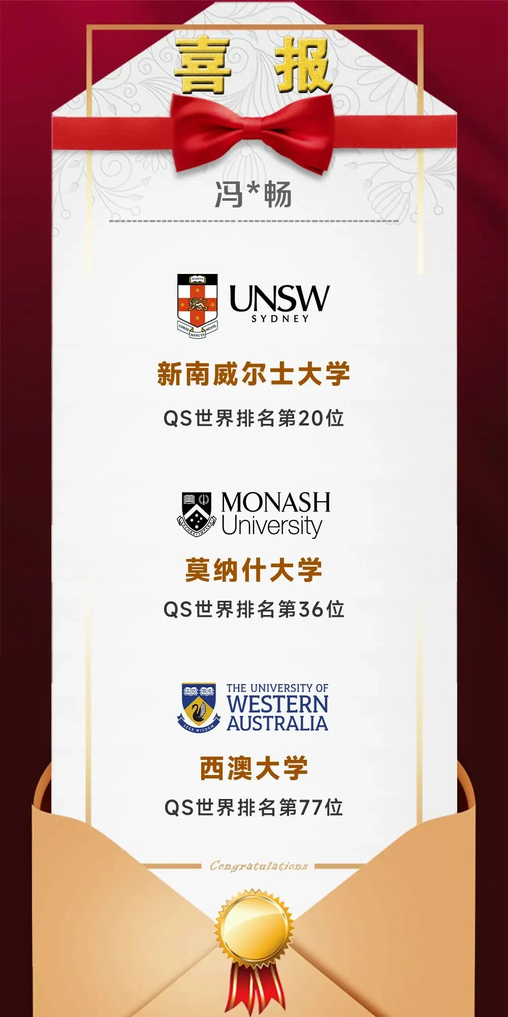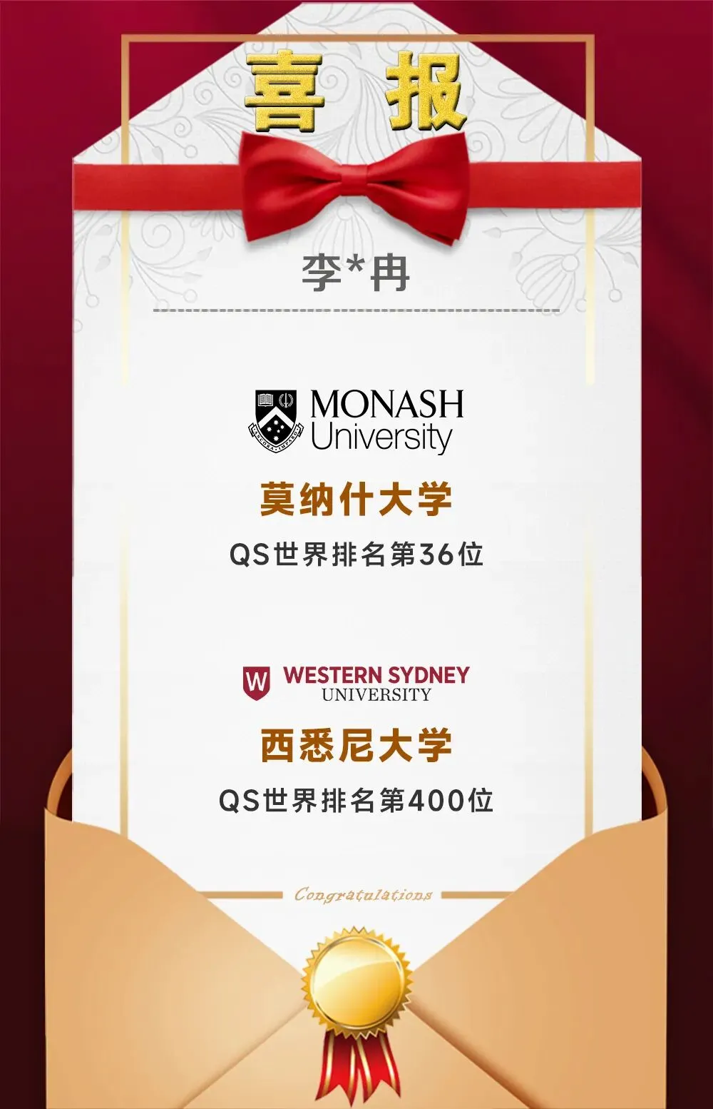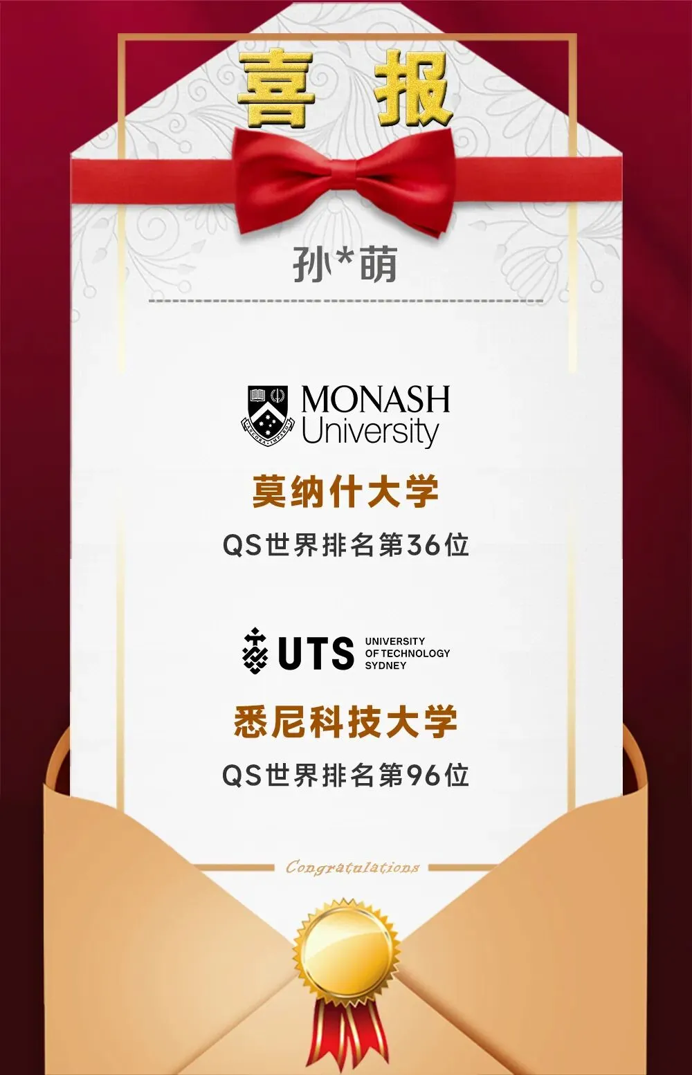 继剑桥大学、香港大学、香港科技大学、纽约大学阿布扎比分校、多伦多大学等多个国家名校录取后,郑州47中中美班&A Level班高三学子澳洲方向再传喜讯!