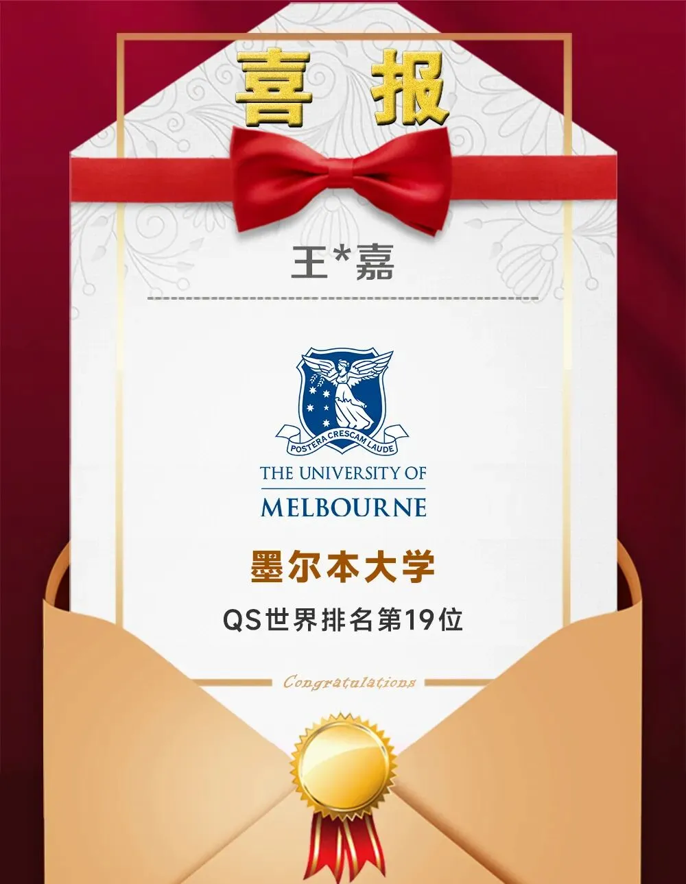 录取院校包括:墨尔本大学、悉尼大学、新南威尔士大学、澳大利亚国立大学、莫纳什大学、昆士兰大学、西澳大学、阿德莱德大学、悉尼科技大学、昆士兰科技大学、皇家墨尔本理工大学、科廷大学等多所澳洲知名高校。
