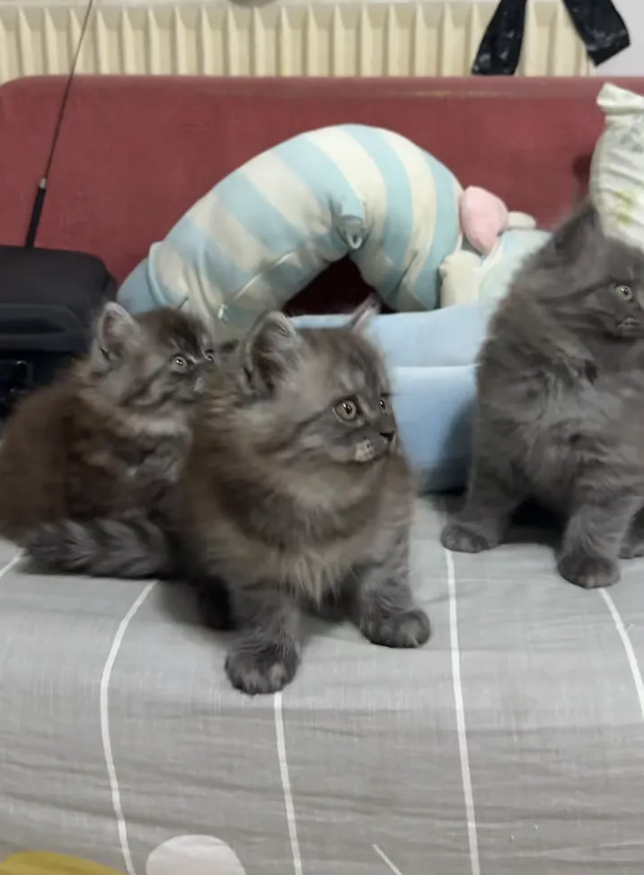 宠物信息:都有大围脖,都是长毛(最左边那只是矮脚),嘴套大大的,性格都很好,都是自家小猫生的